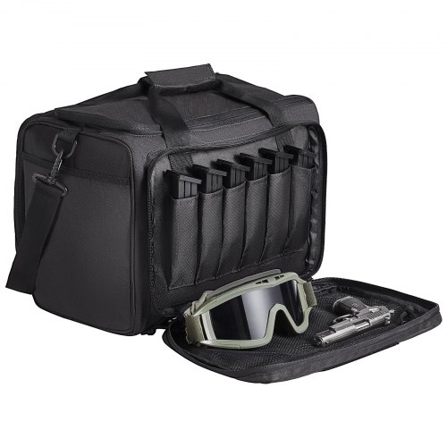 VEVOR Range Bag for 3 Pistols Tactical Gun Range Bag Single Shoulder Strip BlackMultifunctional Range BagSpacious and Organized StorageOrganized DesignHigh-Quality DetailsVersatile UseSafe and PortableMagazine Capacity: 6 Magazines,Strap Type: Single Shoulder,Pistol Capacity: 3 Pistols,Color: Black,Storage Management: 2 Detachable Dividers, 9.8 × 8.7 in (25 × 22 cm),Product Model: TL-1709,Material: 600D Polyester,Product Dimensions: 14.2 × 12.2 × 10.2 in (36 × 31 × 26 cm),Strap Size: 1.5 × 55.1 in (3.8 × 140 cm),Net Weight: 2.9 lbs (1.3 kg)