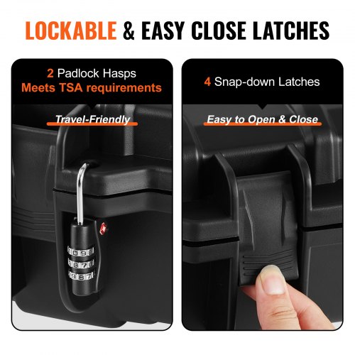 VEVOR Tactical Range Case, Outdoor Tactical Hard Case with 3 Layers Fully-protective Foams, 42 inch lockable Hard Tactical Range Case with Wheels, IP67 Waterproof & CrushproofHeavy-duty Gun CaseMaximum ProtectionWin in the DetailsEasy to CarryCarry with ConfidenceSecurity in HomeTSA Standard: YES,Waterproof: IP67,Capacity: Up to 2 rifles (For Rifles up to 40 inch),Casters: 2 pcs,Item Model Number: 1043513,Latch: 4 pcs,Pressure Relief Valve: YES,Casters Diameter: 2.2 in/55 mm,Internal Size: 41x13.9x3.6in/1042x352x91 mm,Main Material: PP,Weight: 12.79 lbs/5.80 kg,Product Size: 42.9x16.1x6.1in/1090x410x155 mm