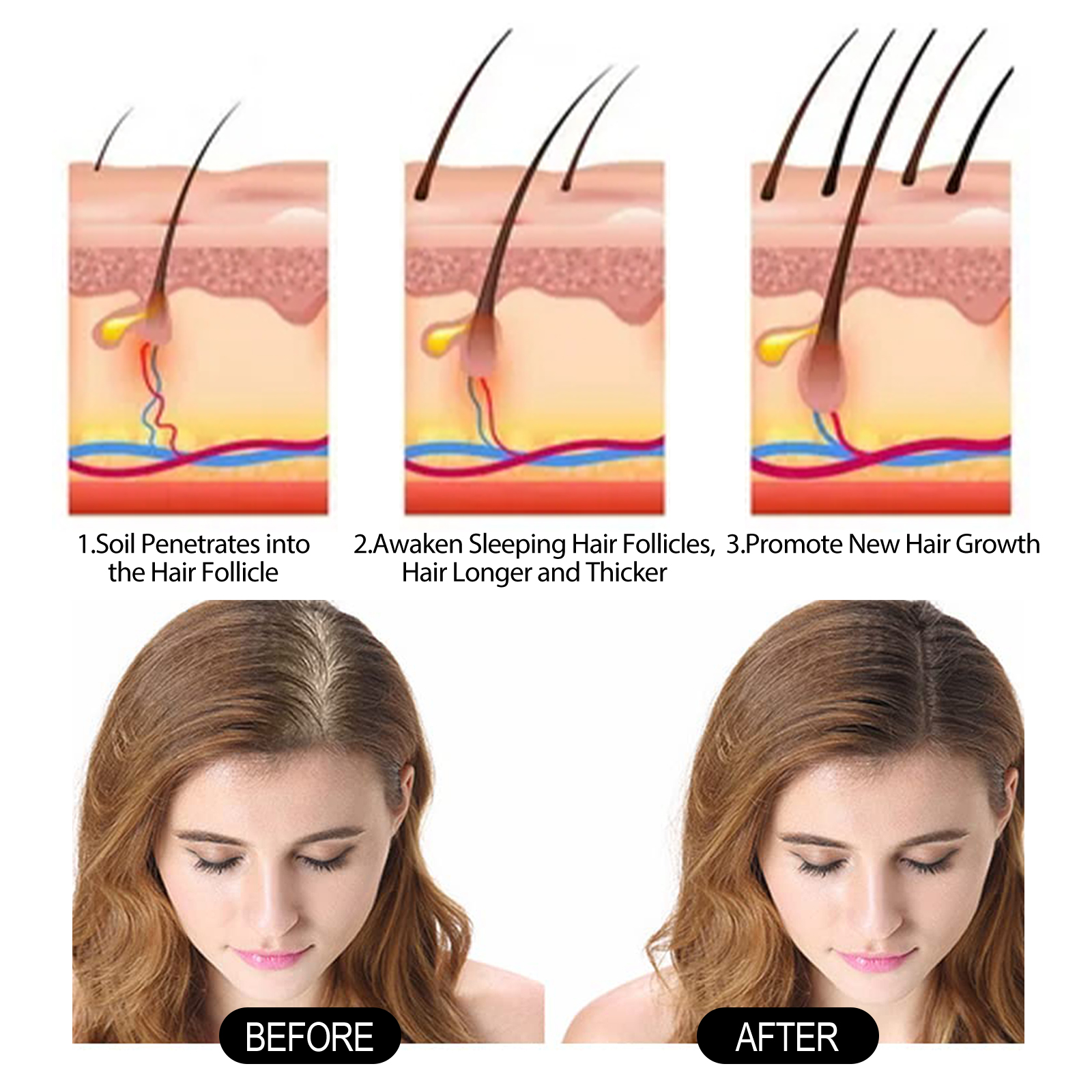 Our hair oil contains castor oil, hydrogenated olive oil, lavender oil. It can unclog irritation of the scalp, unclog hair follicles, prevent hair breakage, and make hair longer and denser. Its use method is very simple: 1. Wash and dry hair; 2. Divide the hair into sections and apply evenly directly to the scalp or hair; 3. Gently massage with fingers until absorbed. The active ingredients further nourish the hair roots, increasing the number of small dark spots, more new hair, and thicker hair.