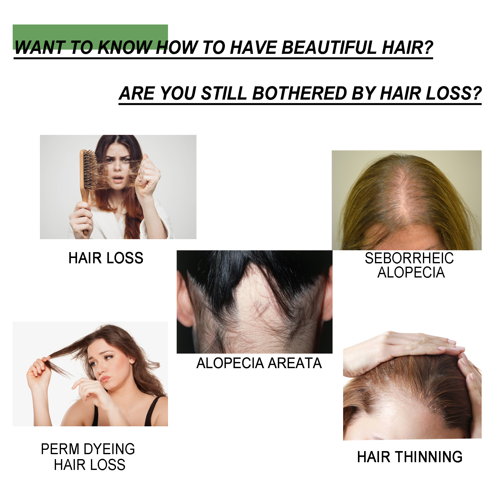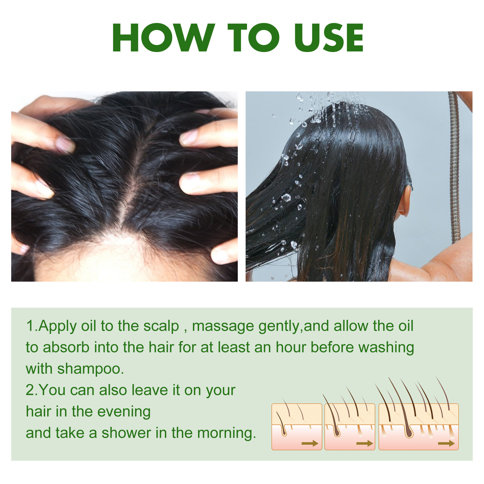 Our hair care oil contains Daisy extract, purslane extract. It reduces hair loss and helps with dry scalp and premature graying. Its application method is very simple: 1. Apply the oil to the scalp, massage gently, let the oil absorb into the hair for at least an hour, and then shampoo out. 2. You can also leave it in your hair at night and take a shower in the morning. And its nourishing properties can be quickly absorbed into your hair, providing moisture to tame frizz and heal breakage.
