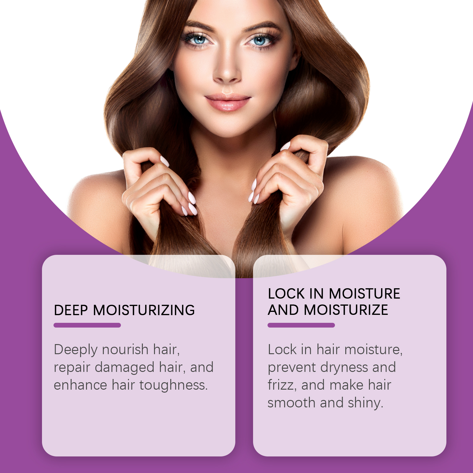Our Hair Essential Oil Care capsules (purple) contain argan oil, Jojoba seed oil, sunflower seed oil. It can deeply nourish hair, repair damaged hair and enhance hair toughness. The way to use it is simple: 1. Clean your hair and keep it slightly dry. 2. Take a capsule, squeeze it open and apply the essential oil directly to your hair. 3. Gently massage until completely absorbed. Locks in moisture, prevents dryness and frizz, and leaves hair smooth and shiny.