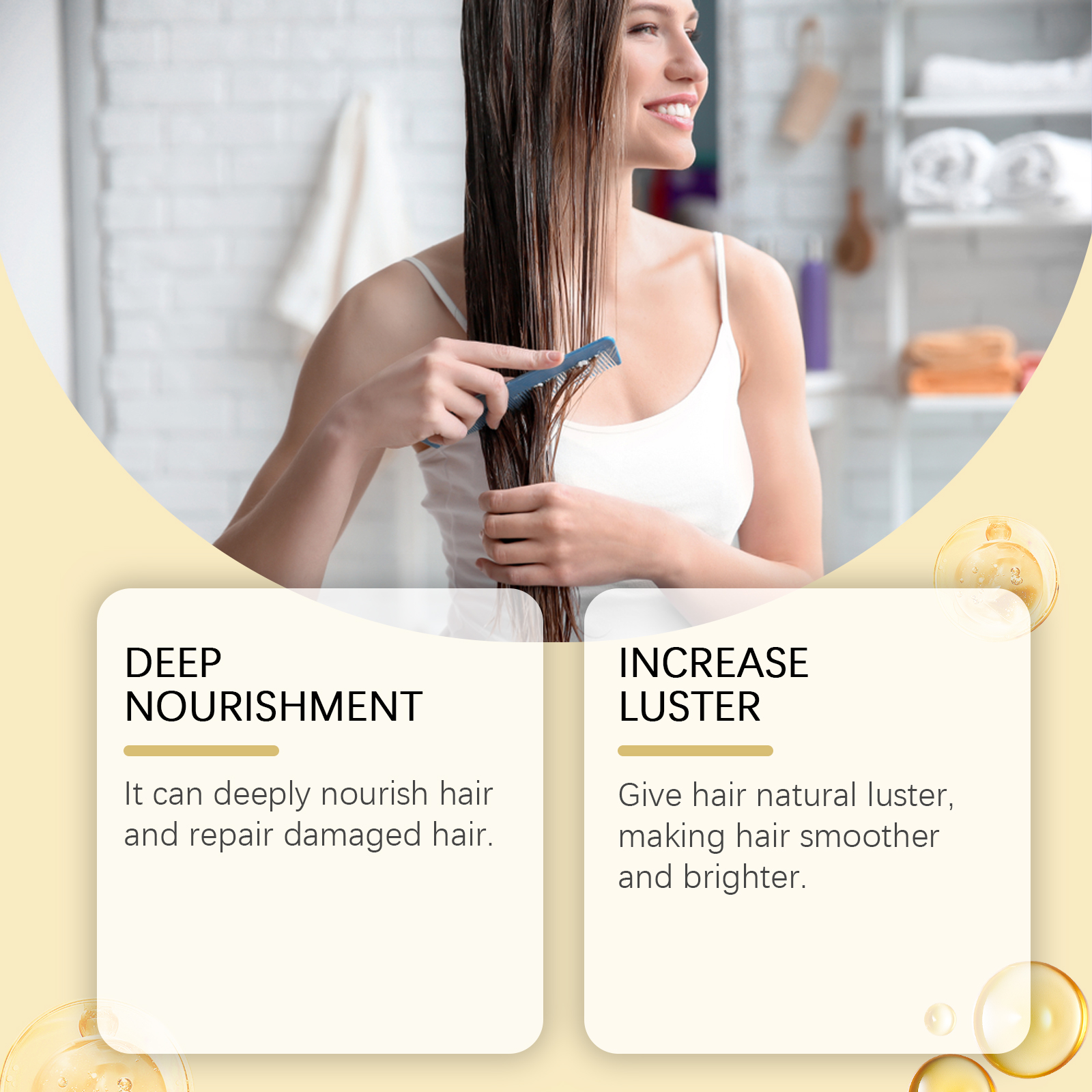 Our essential oils for hair care include rosemary leaf oil, castor seed oil, argan oil. It can deeply nourish hair and repair damaged hair. Gives hair a natural shine and makes it smooth and bright. The way to use it is very simple: 1. First clean and dry your hair; 2. Apply appropriate amount to scalp and hair evenly; 3. Gently massage scalp with fingertips to promote absorption. Light texture, non-greasy, fast absorption, comfortable to use.