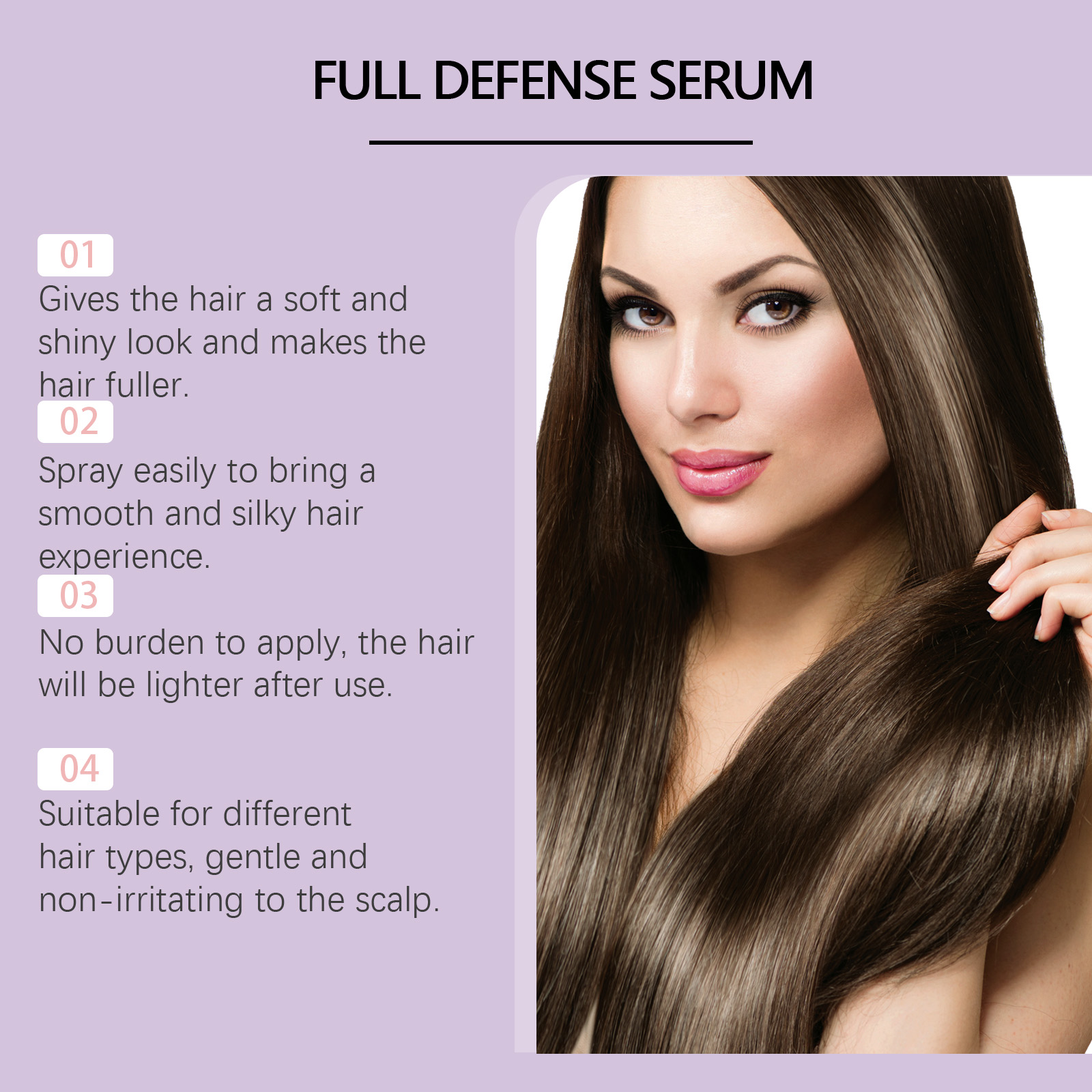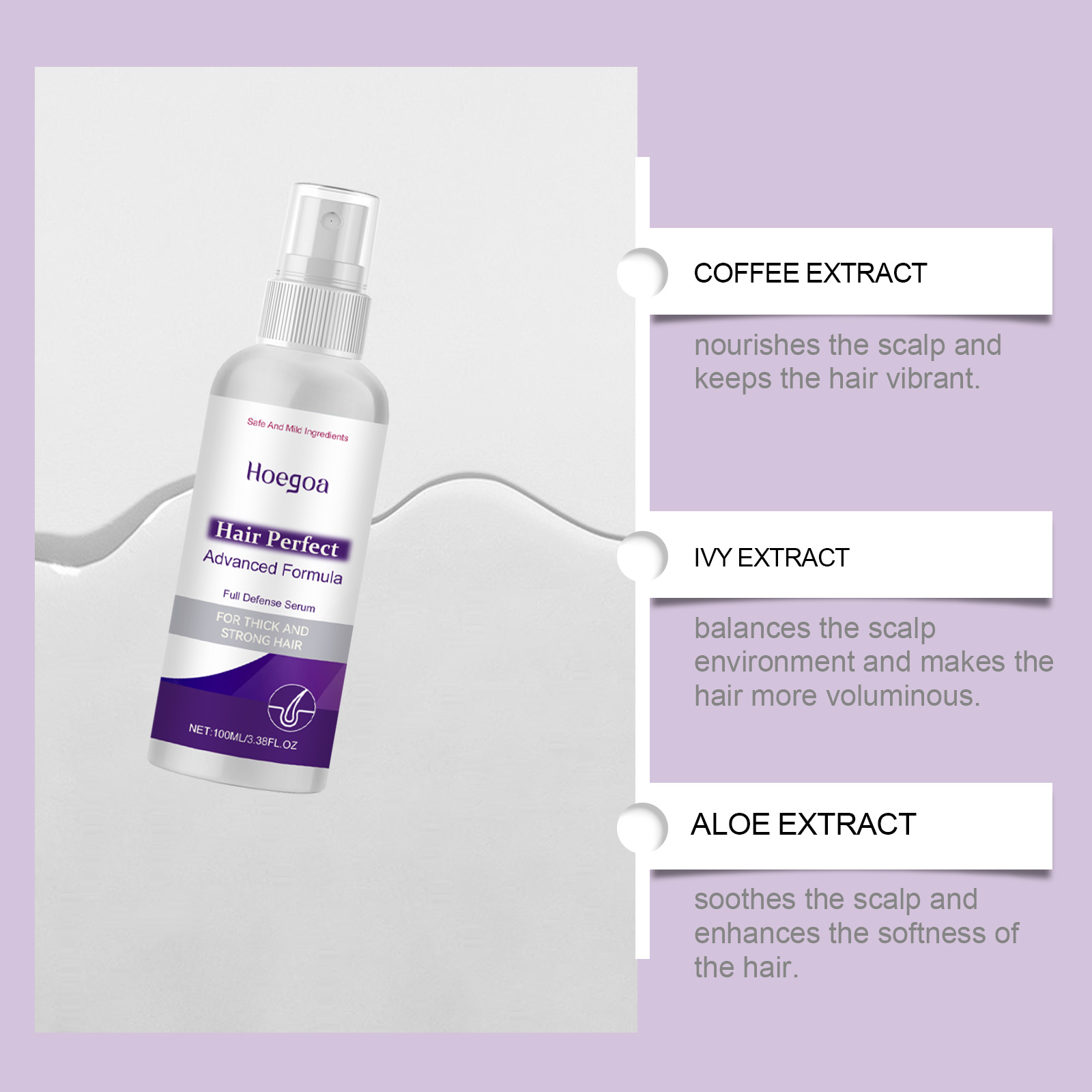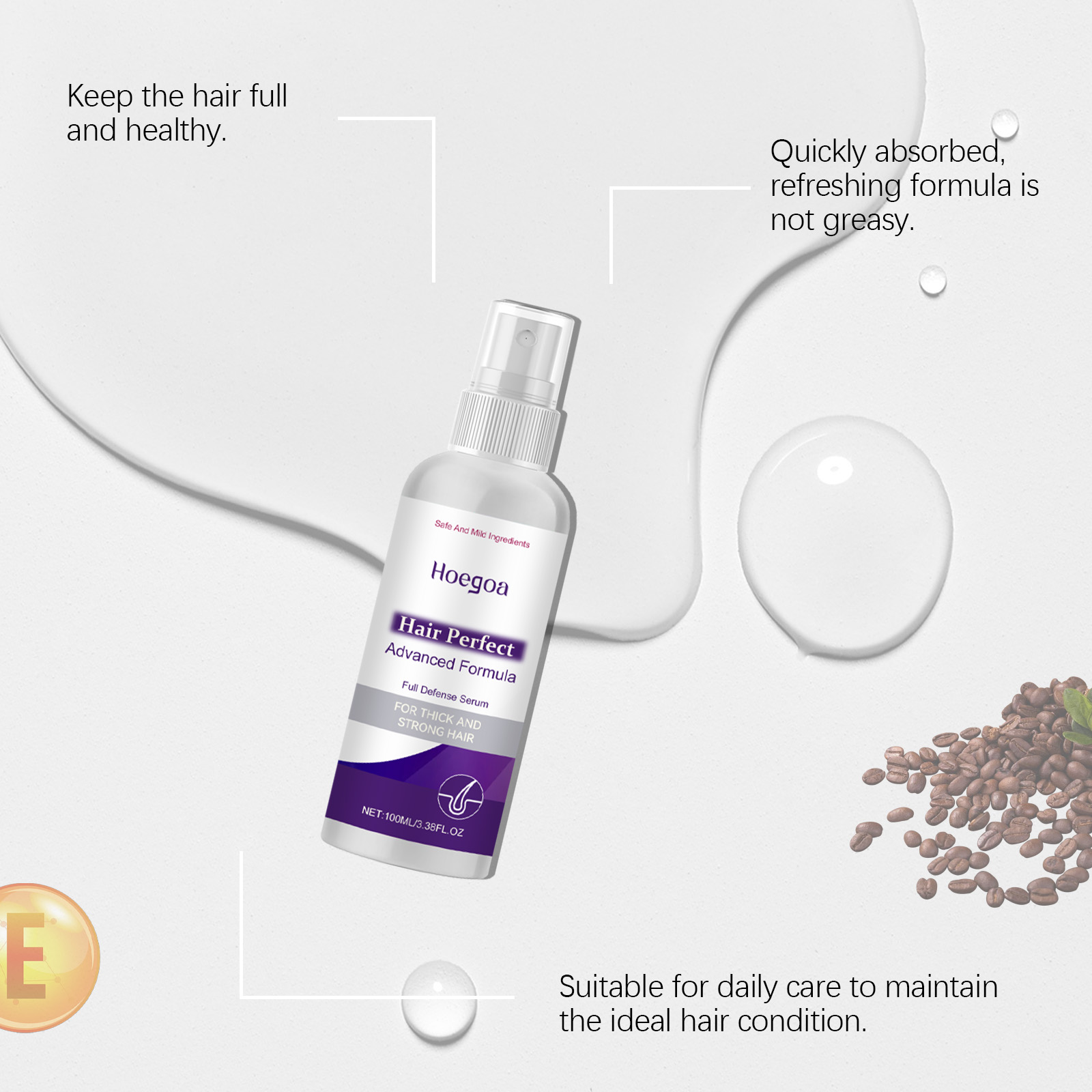 Our hair spray contains liquid paraffin and camellia seed oil. It can deeply moisturize the scalp and make hair fuller. Continuous use makes hair smoother. Its application is simple: clean your scalp and keep it dry. Apply appropriate amount to scalp and wait for absorption. And it can stimulate the scalp, support the growth of healthy hair, and help you regain full hair volume.