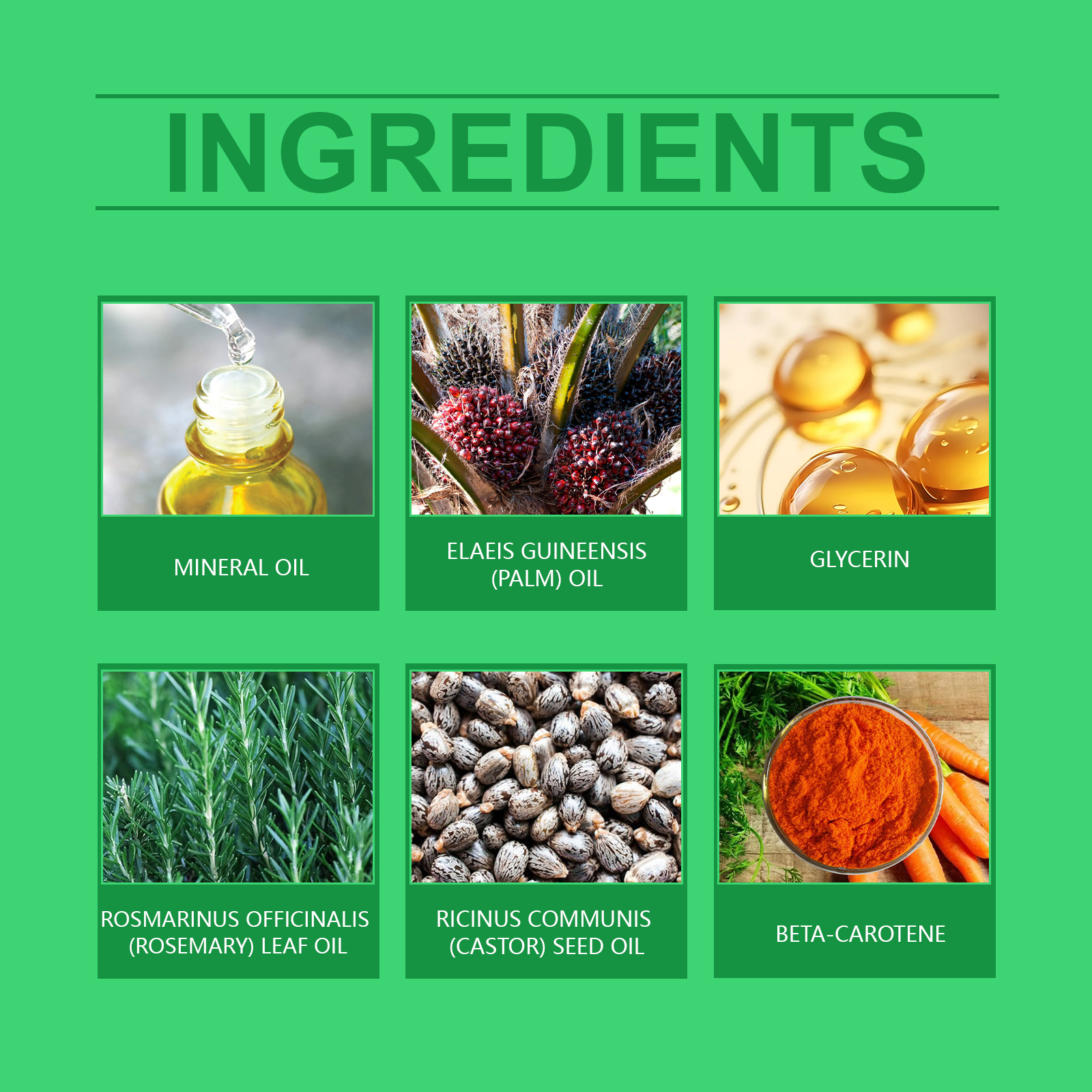 Our Rosemary Batana hair oil contains mineral oil, oil palm oil, glycerin. It can deeply nourish hair and repair damaged hair. Gives shine to hair and makes it smoother and brighter. Its application method is simple: 1. Clean hair and scalp, keep dry; 2. Apply appropriate amount to scalp evenly; 3. Gently massage until fully absorbed. Light texture, non-greasy, fast absorption, comfortable to use.