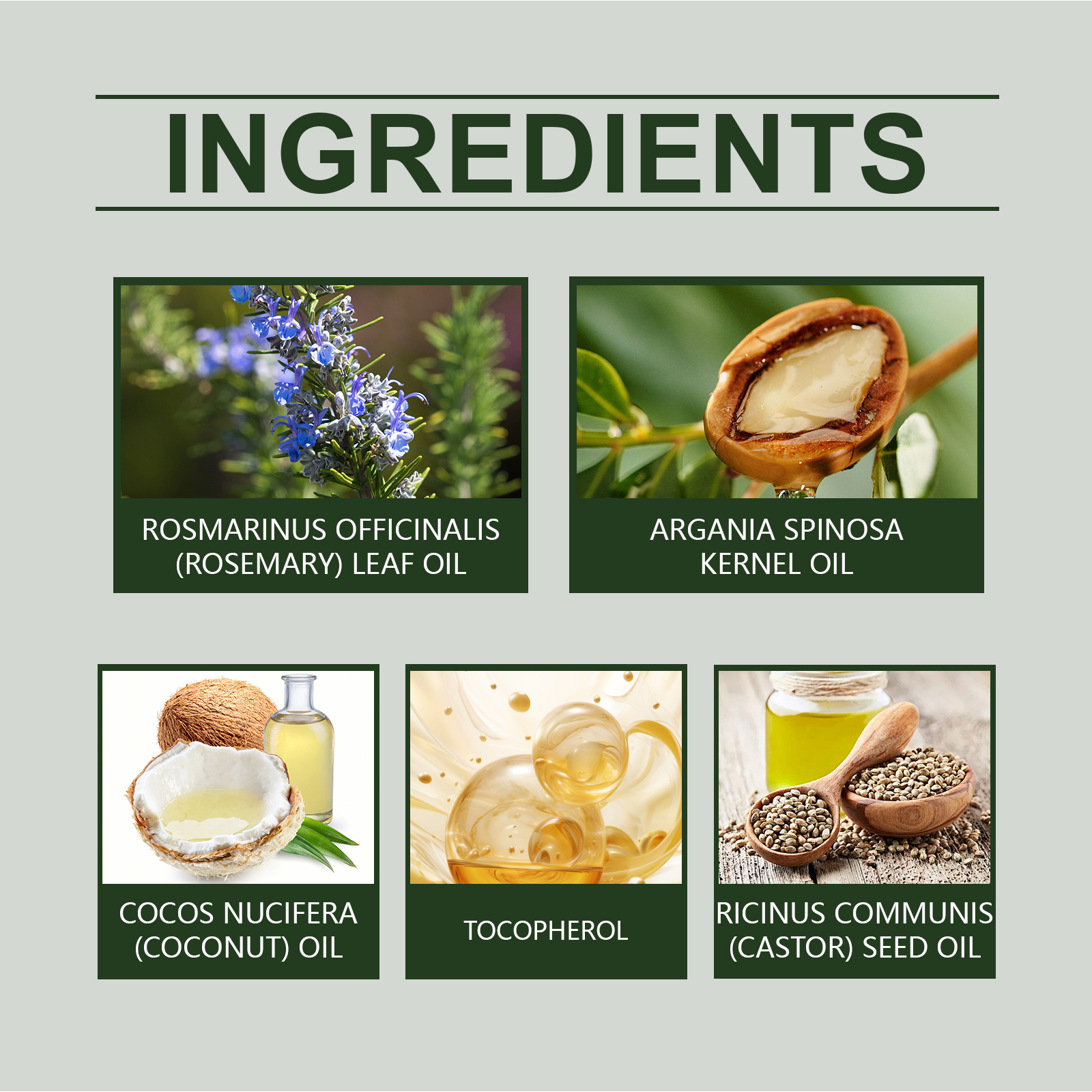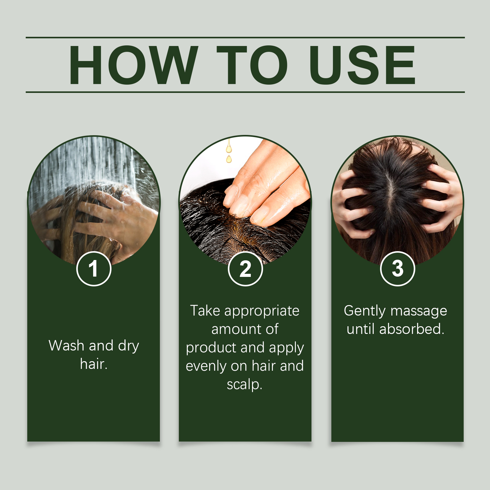 Our rosemary essential oil for hair care contains tocopherol (vitamin E), coconut oil. It can improve hair toughness, reduce hair breakage, and strengthen hair roots. The way to use it is simple: wash and dry your hair. Take appropriate amount of product: evenly apply to hair and scalp. Gently massage until absorbed. And can regulate scalp oil, relieve dryness and itching.