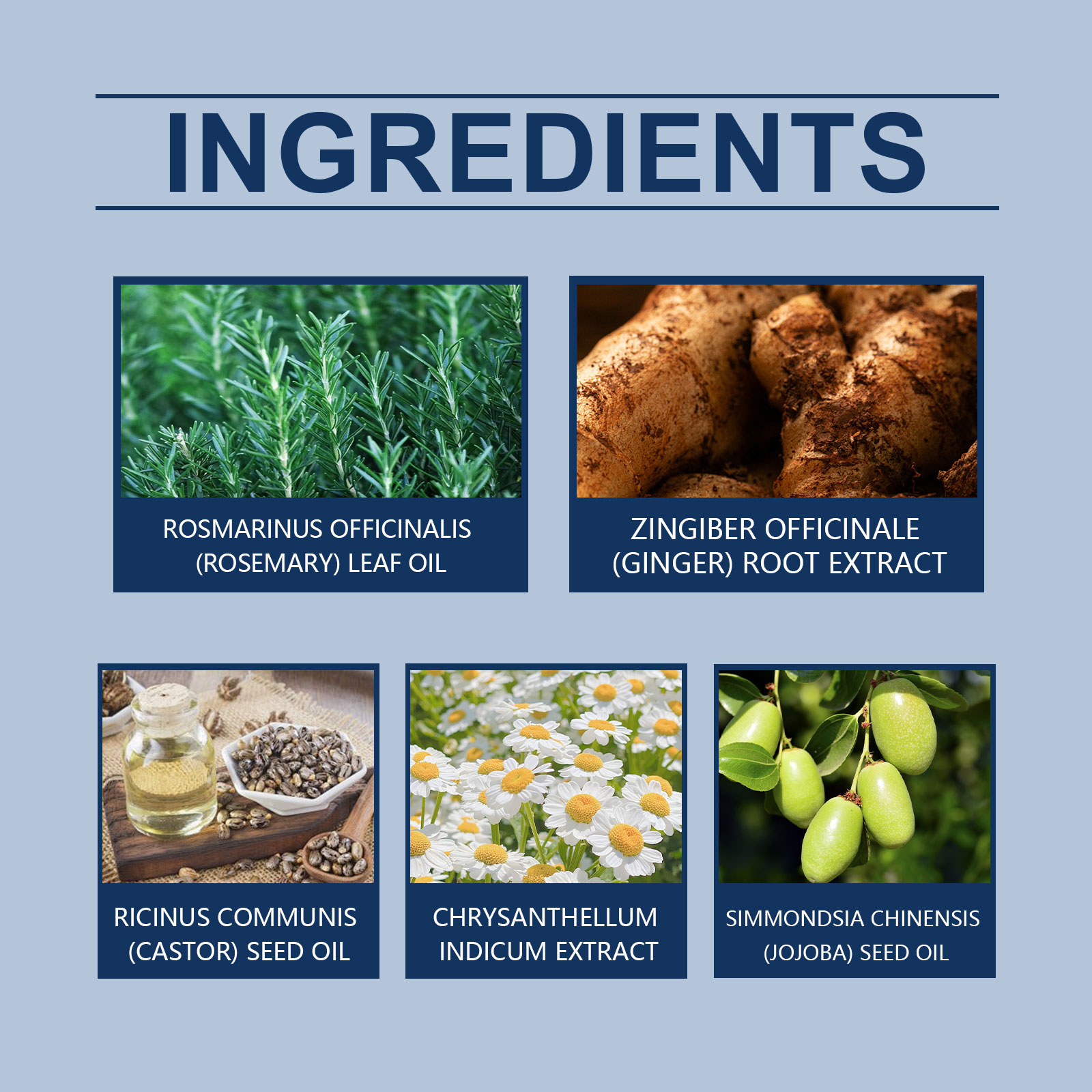 Our rosemary hair oil contains Jojoba seed oil and chamomile extract. It can provide rich nutrition for hair and improve hair quality. Its application is simple: gently clean the hair and scalp, keeping it slightly dry; Apply appropriate amount of essential oil evenly to hair and scalp; Gently massage the scalp with your fingertips to promote absorption. And it soothes the scalp, relieving irritation and dryness.