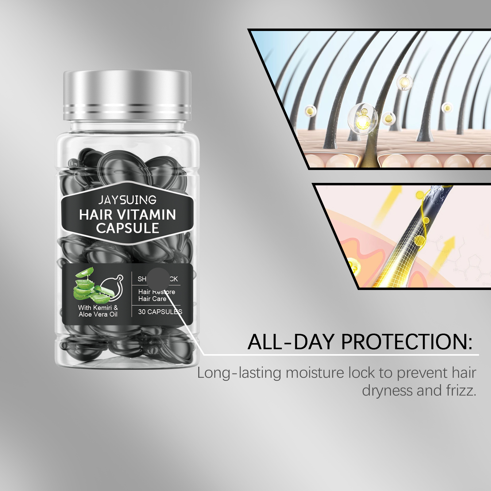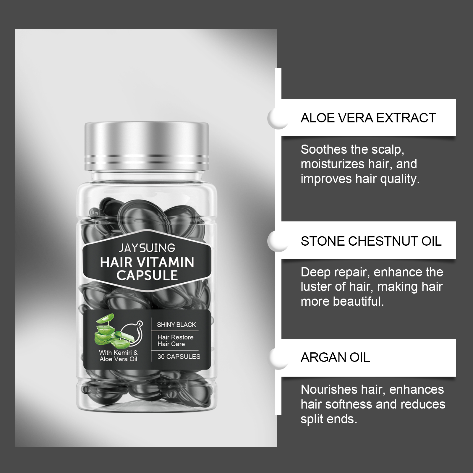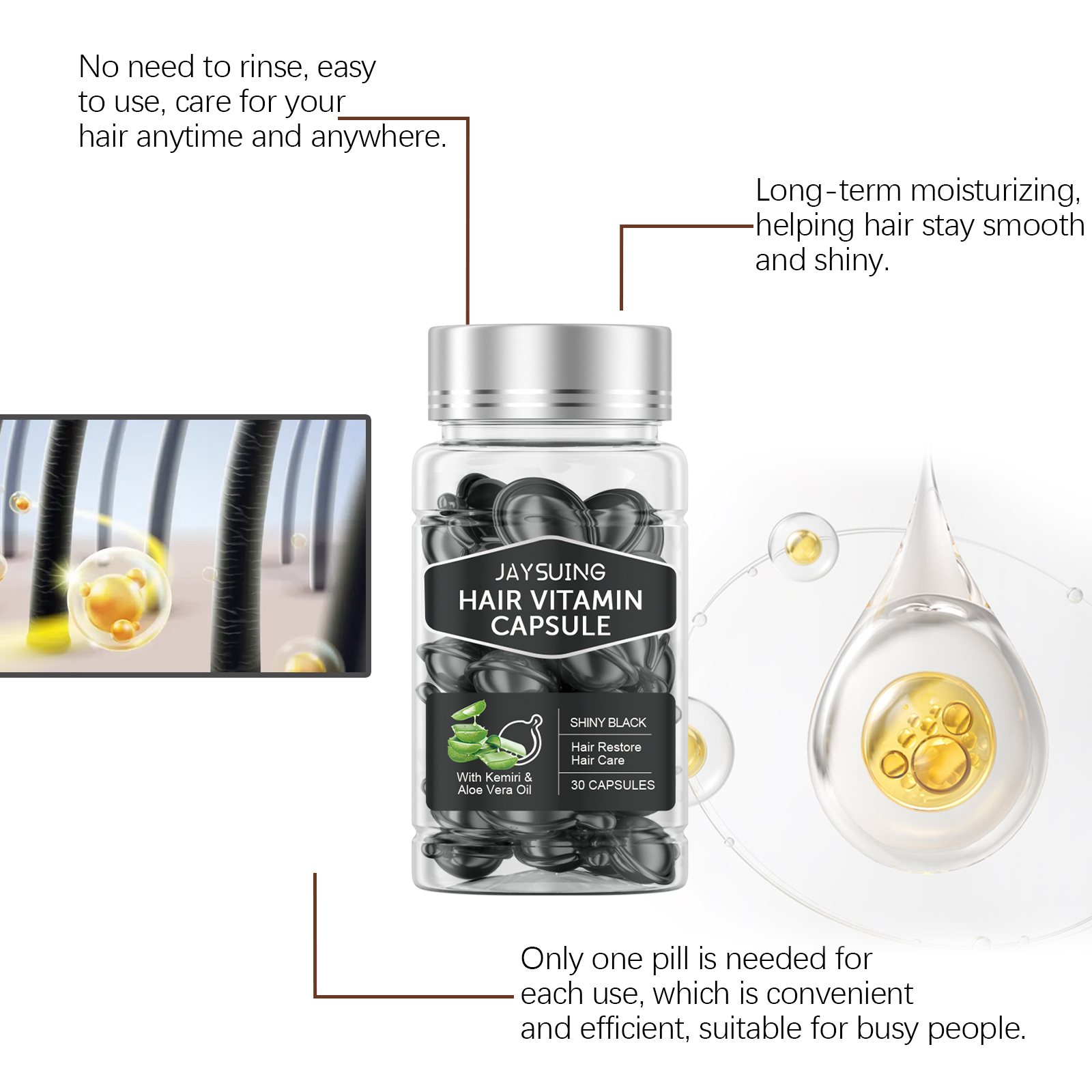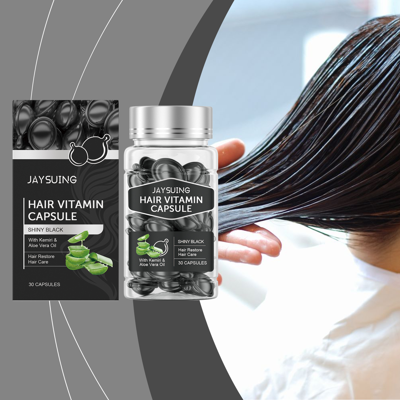 Our Hair Essential Oil Care capsules (black) contain mineral oil, Jojoba seed oil, tocopherol (vitamin E). It can deeply nourish hair. Repair damaged hair and enhance hair toughness. The way to use it is simple: 1. Clean your hair and keep it slightly dry. 2. Take a capsule, squeeze it open, and apply the essential oil directly to your hair. 3. Gently massage until fully absorbed. Locks in moisture, prevents dryness and frizz, and leaves hair smooth and shiny.