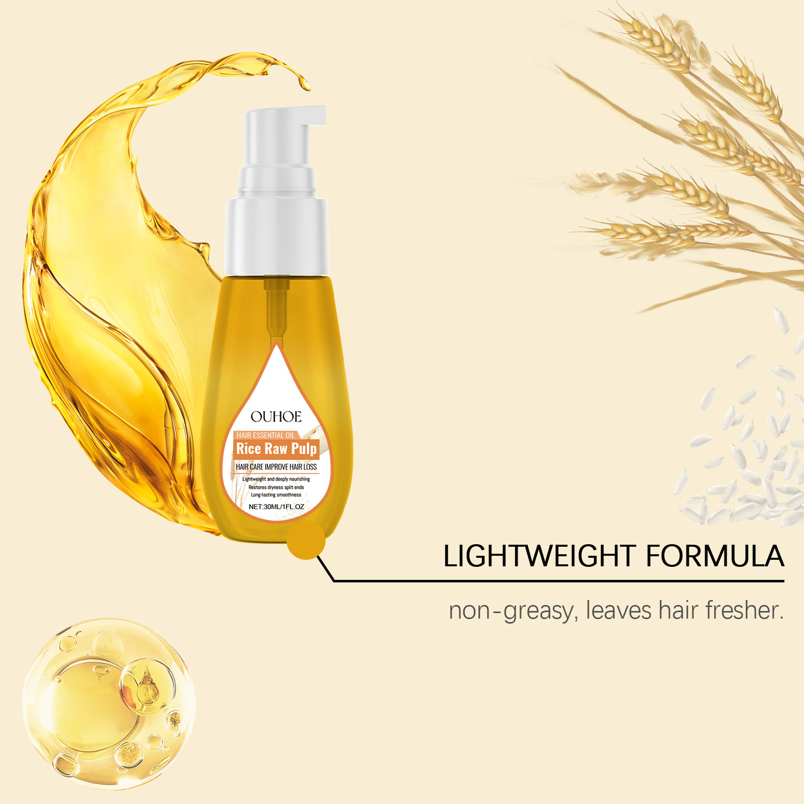 Our rice washing water hair oil contains glycerin, rice bran water and rice flour. It can deeply nourish and improve hair quality. Repair hair, enhance hair toughness. Strong treatment to increase hair elasticity. The way to use it is simple: 1. After washing your hair, keep your hair slightly wet. 2. Take a proper amount of hair oil and apply it evenly from the middle to the ends of your hair. 3. Gently massage your hair to absorb the oil. Promotes hair nourishment and enhances softness. Deeply nourishes and improves hair shine.