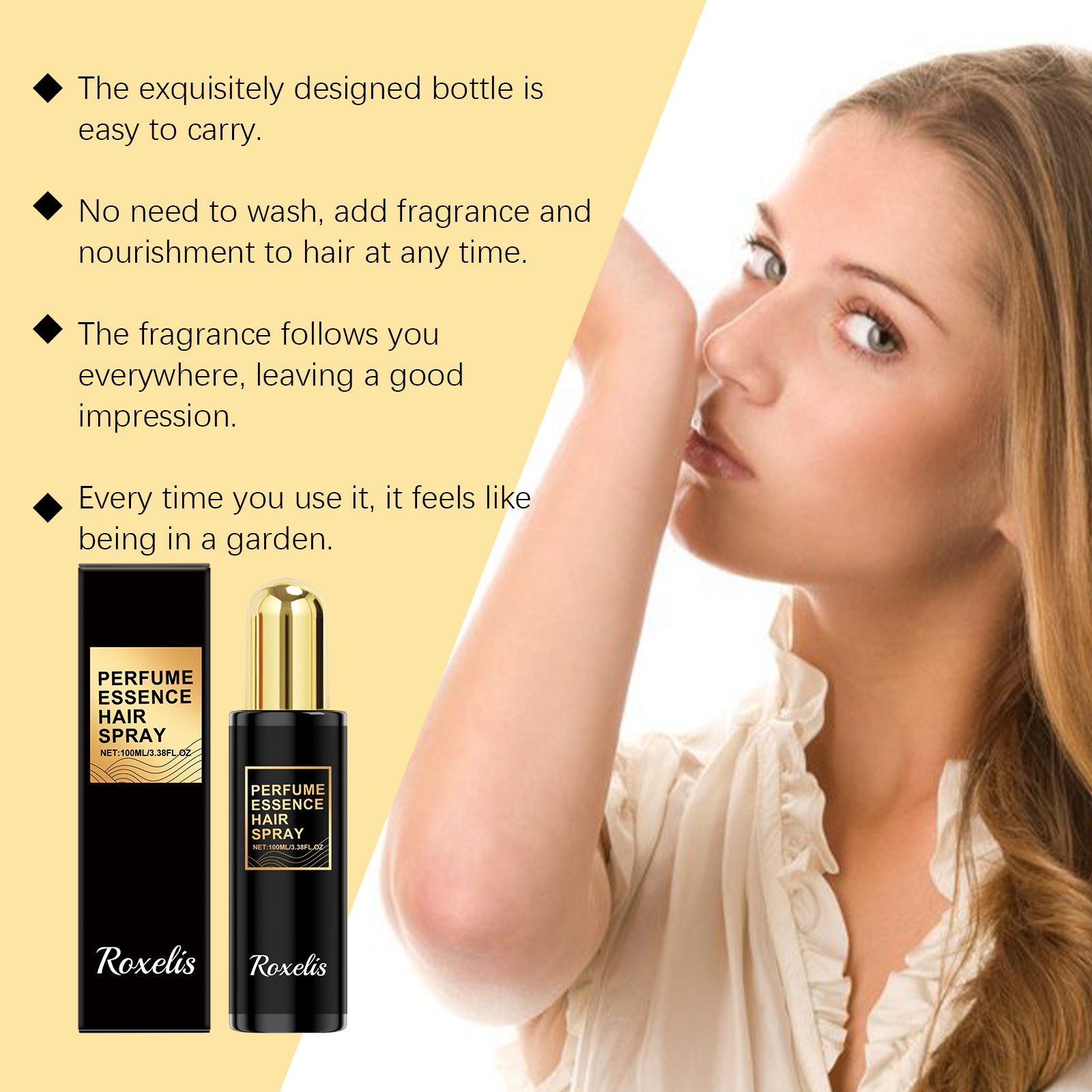 Our perfume hair care essential oil spray contains PEG-40 hydrogenated castor oil, ethylhexyl glycerol. It can not be greasy and sticky, and it is an essential ingredient in daily care to make hair fresh and natural after spraying. Based on the elegant rose scent, it creates a unique scent. The way to use it is very simple: evenly spray an appropriate amount of this product on the hair and gently rub. And can deeply nourish hair, make hair soft and smooth, glow healthy luster.