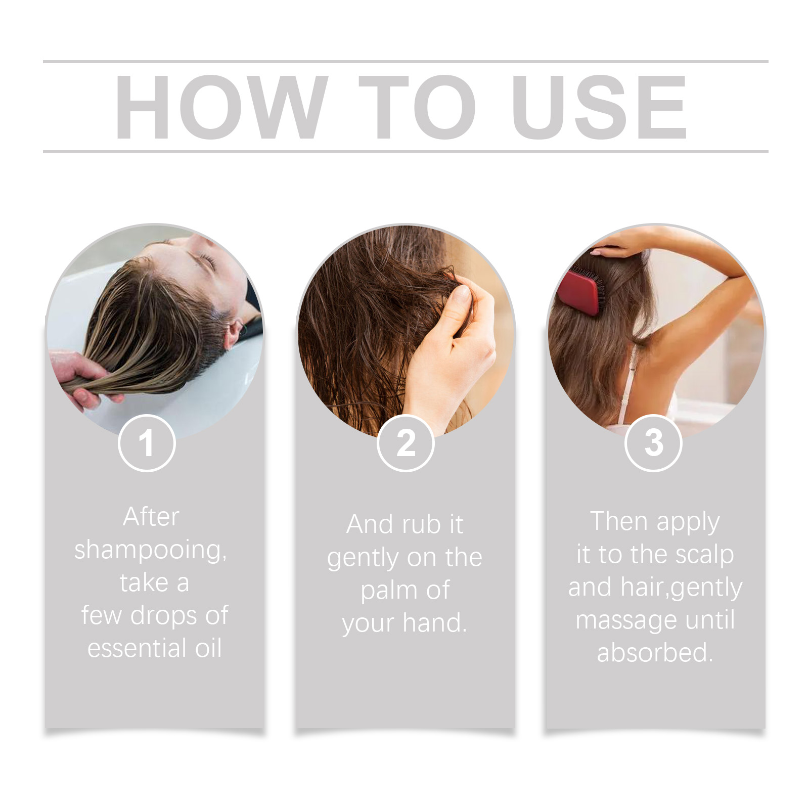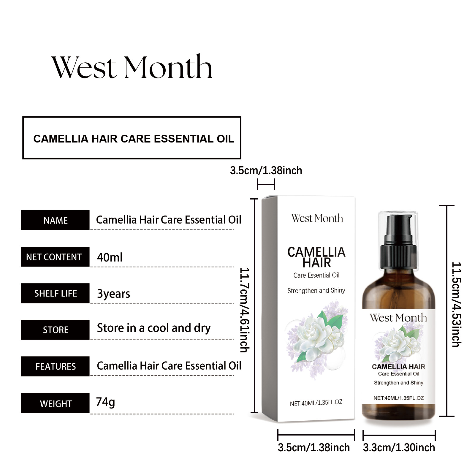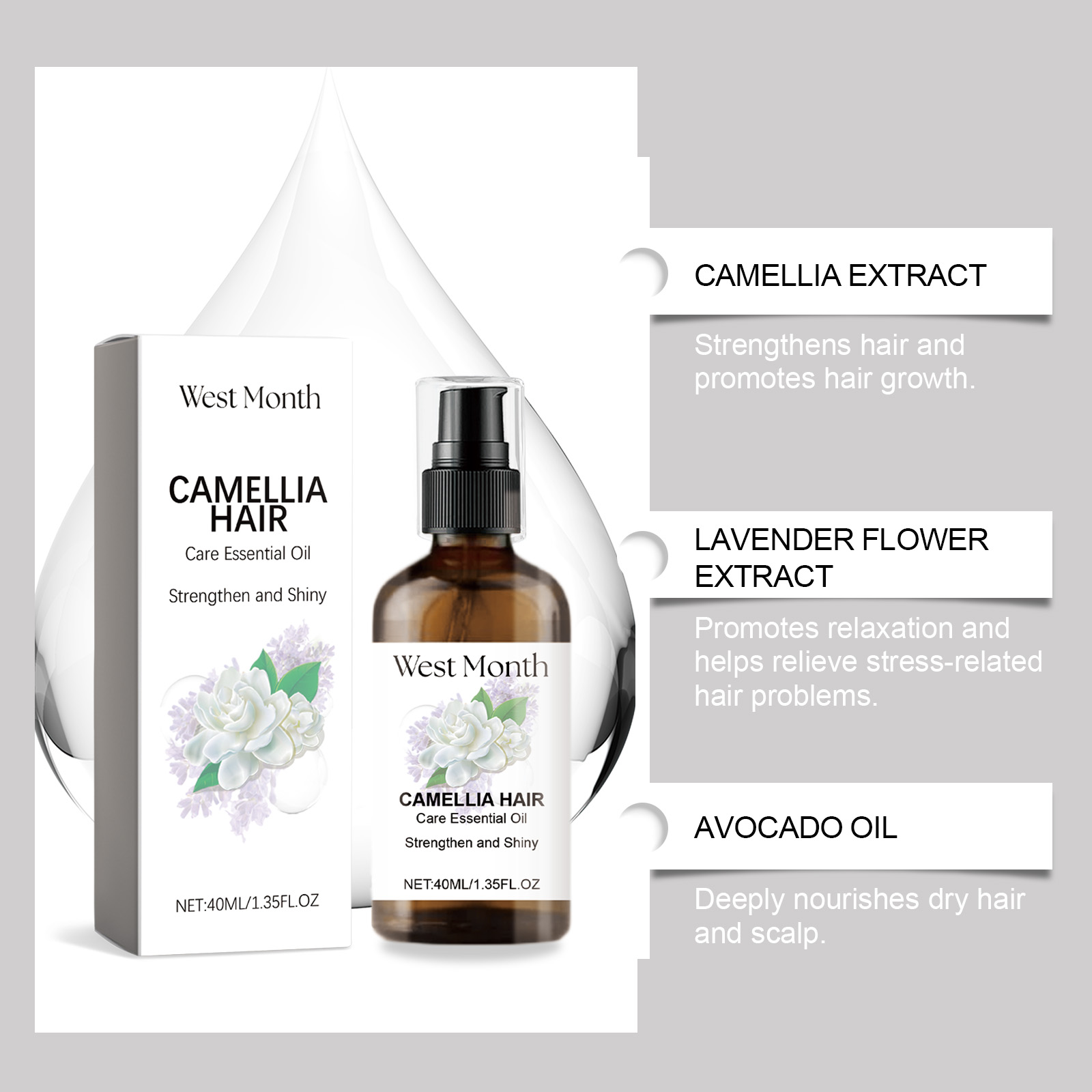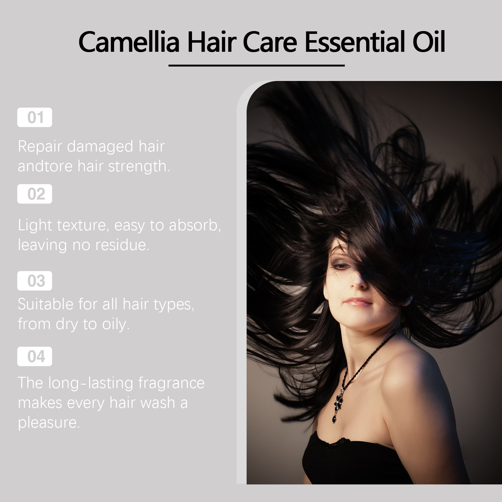 Our camellia hair care oil contains camellia extract, ginger extract, lavender flower extract. It strengthens and nourishes damaged hair from the inside out. The way to use it is simple: 1. After washing your hair. Take a few drops of essential oil; 2. Then gently rub it in your palms. 3. Then apply to scalp and hair and massage gently until absorbed. Antioxidant protection against external damage. Promote blood circulation and speed up scalp metabolism.