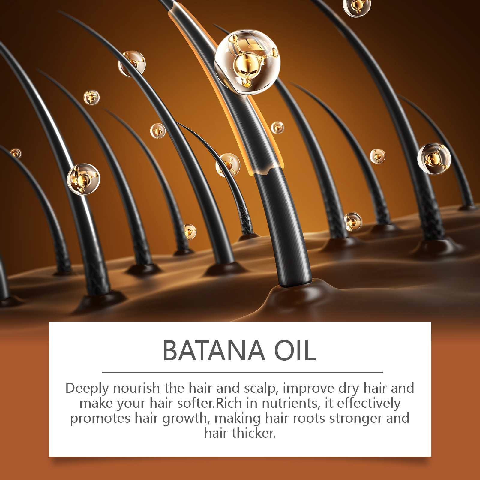 Our Batana oil conditioner contains Batana oil, vitamin E, keratin. It can restore the luster of the hair and render it silky. Improve hair toughness, reduce hair breakage and strengthen hair roots. Its use method is very simple: 1. Wash and blow dry hair; 2. Evenly apply appropriate amount to hair and scalp; 3. Gently massage until absorbed and rinse with water. Deeply nourishes hair and scalp, improves dry hair and makes hair softer. Rich in nutrients, it can effectively promote hair growth, making the roots stronger and hair thicker.