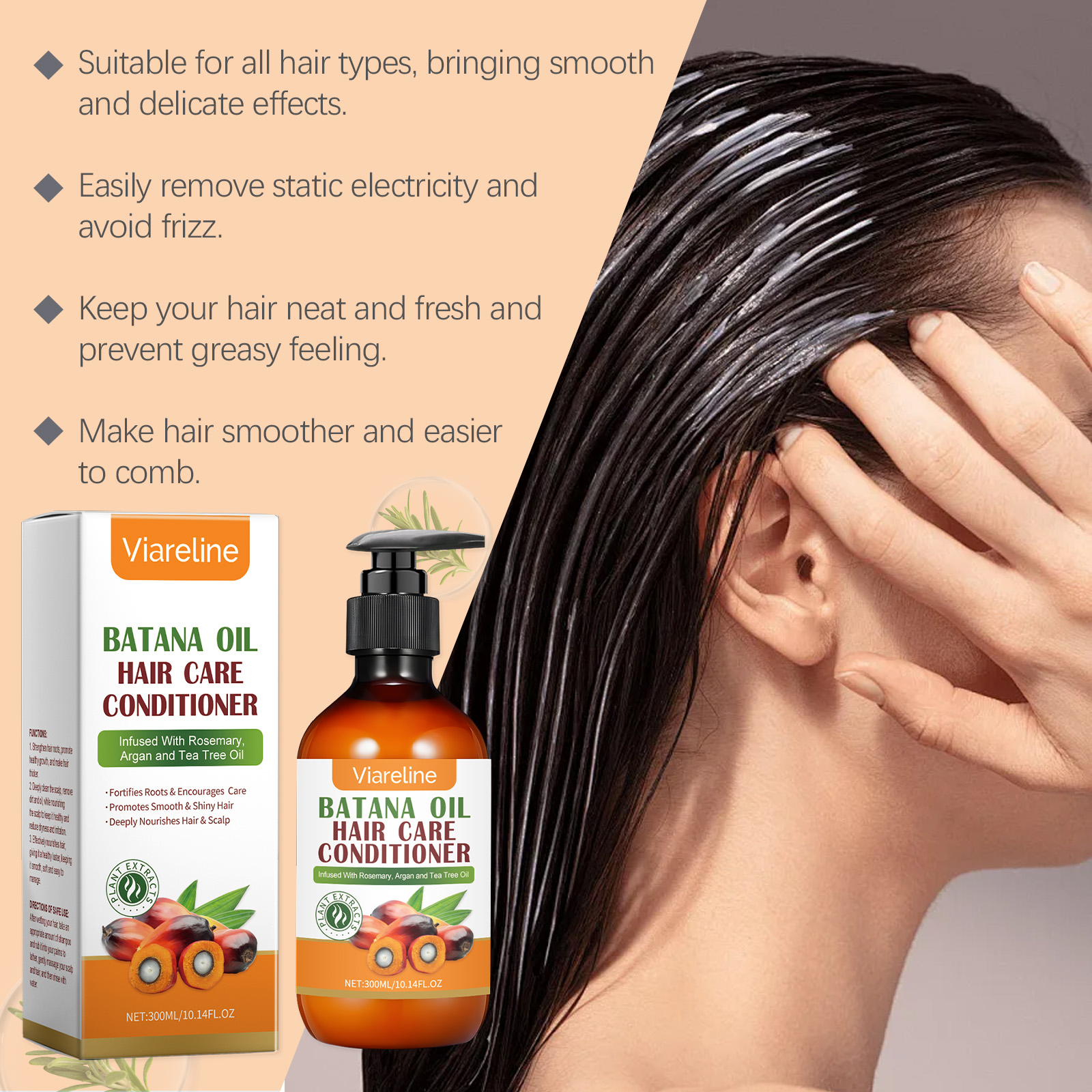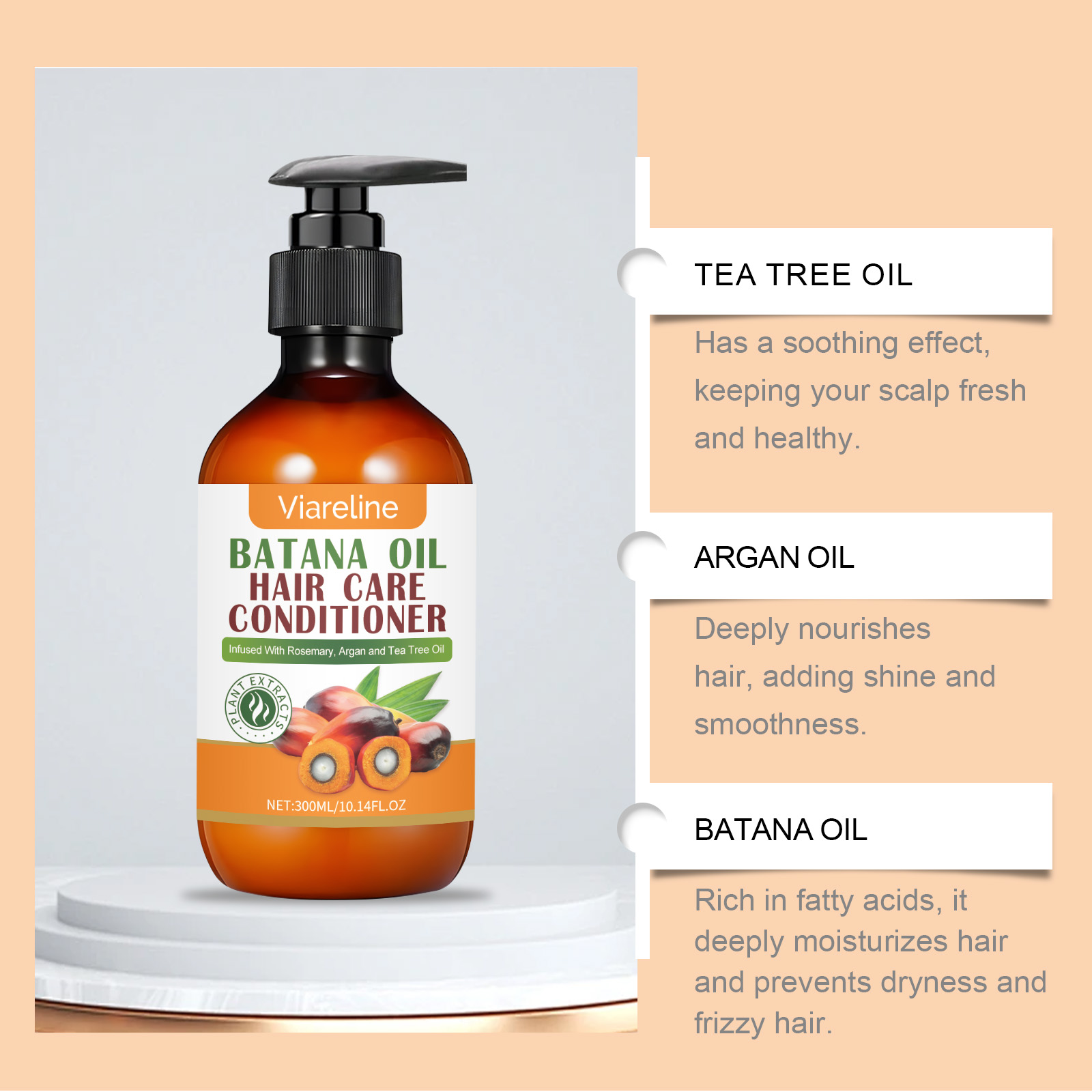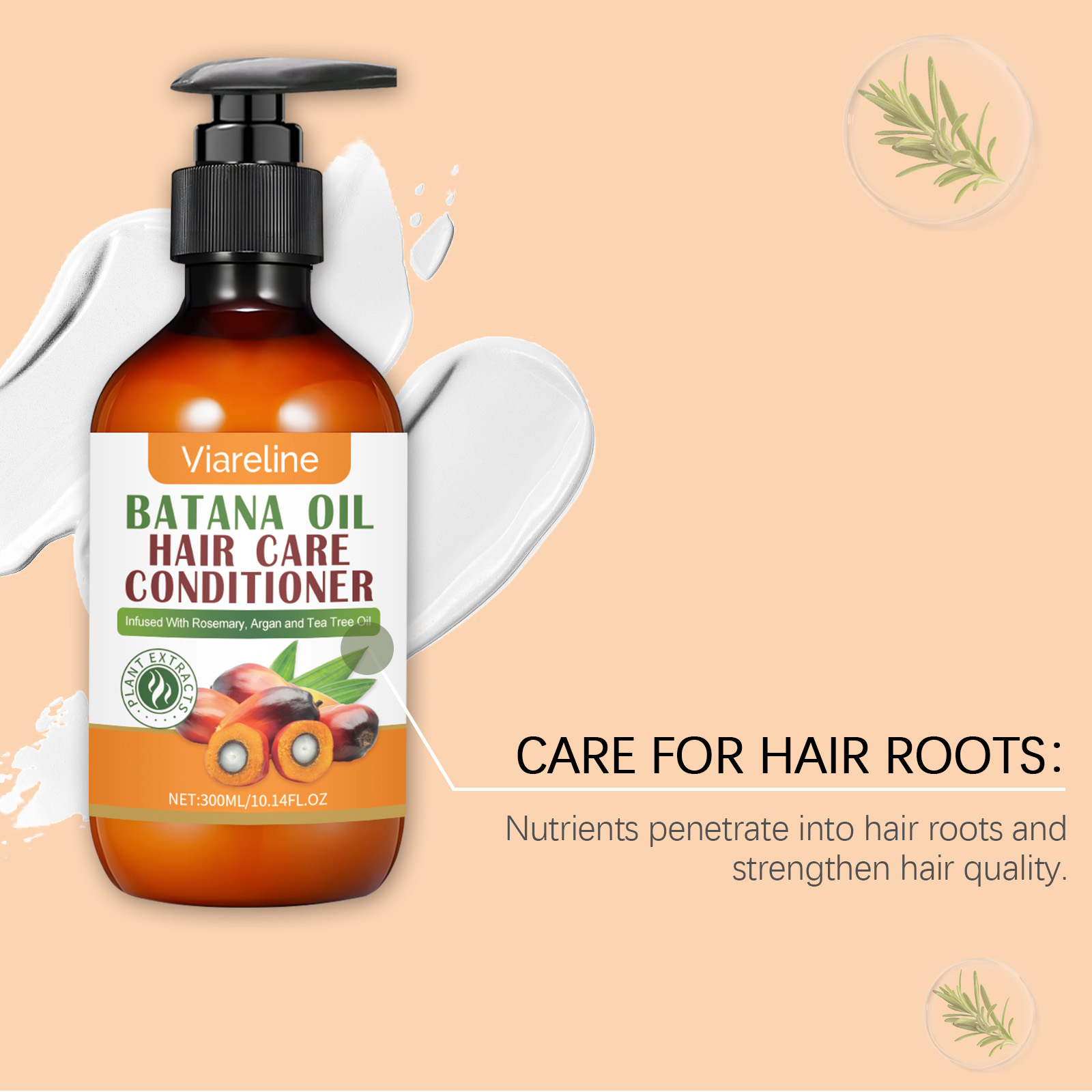 Our Batana oil conditioner contains polyquaternium-7, polydimethylsiloxane. It provides lasting moisture to every strand of hair from root to tip giving it a natural shine and shine. The way to use it is simple: wash your hair and blow dry it until it is semi-dry. Apply appropriate amount of this product to hair and scalp, gently massage hair and scalp with your hands. Rinse with water. And can make dry and frizzy hair soft and smooth.