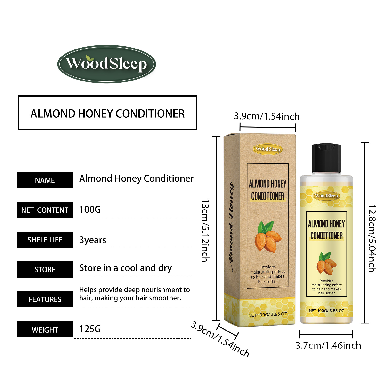 Our almond honey conditioner contains glycerin, tocopherol (vitamin E), coconut oil. It mixes selected oils and vitamins to nourish hair; Effectively improve split ends and breaks in hair. Its use method is very simple: 1. After shampooing, take appropriate amount of this product evenly apply to the hair. 2. Let sit for 5 minutes, then rinse with warm water and blow dry. Provides deep nutrition and shine to hair, increases hair elasticity and strength, and provides antioxidant protection.