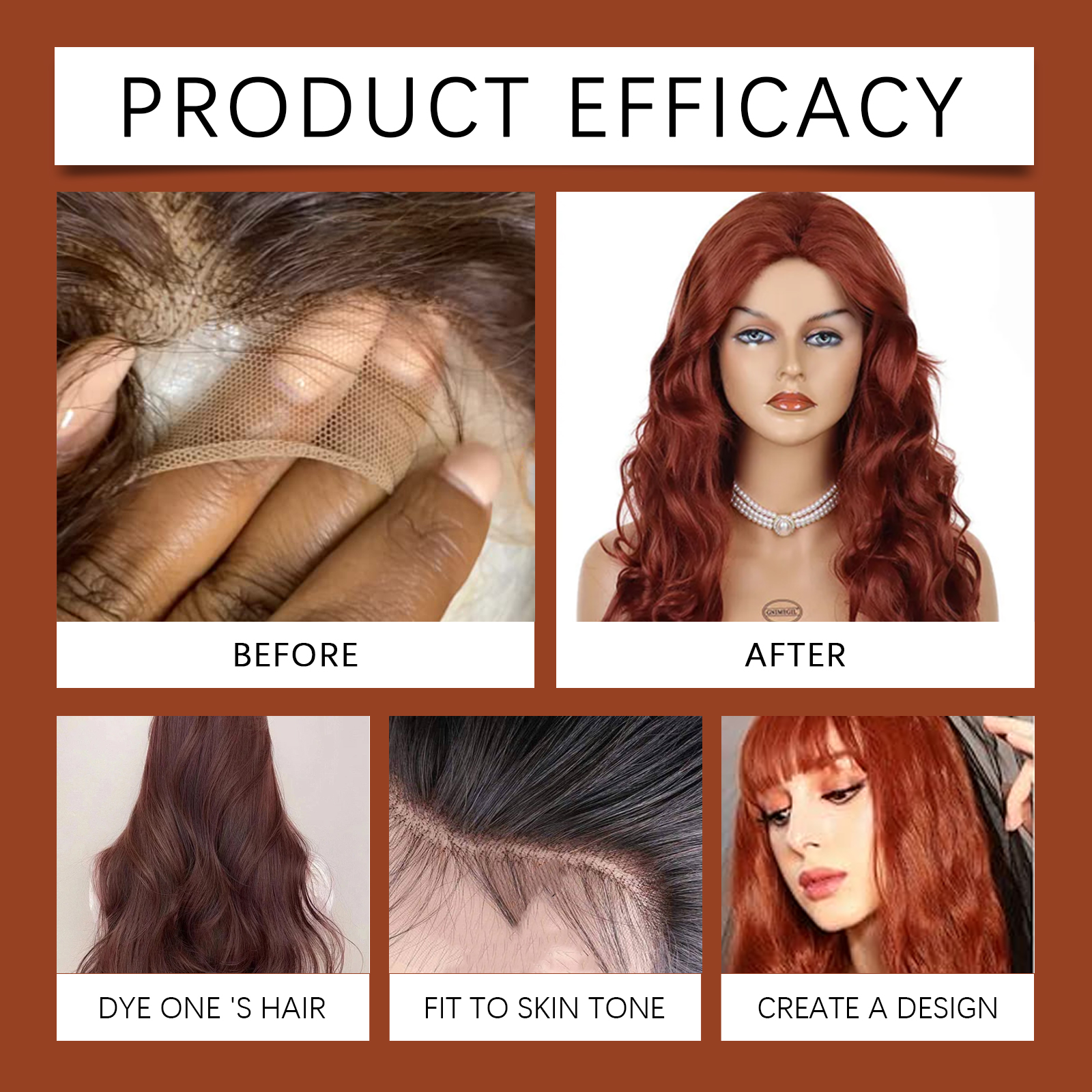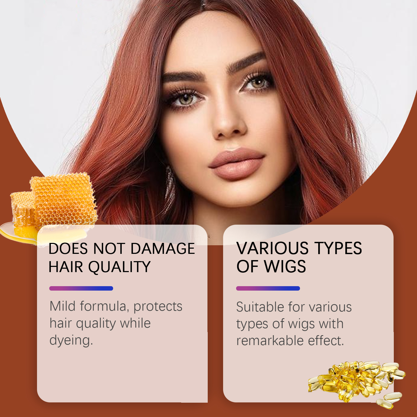 Our hair wig care (red-brown) contains beeswax, vitamin E and avocado oil. Its gentle formula protects hair quality during dyeing and is suitable for all types of wigs with remarkable effects. Its usage method is very simple: Shake the bottle well, pump out an appropriate amount and apply it directly to the lace. Reapply it as needed and spread it evenly. And it can easily dye the wig and give it a new lease of life. Prevent the wig from becoming dull and keep it bright.