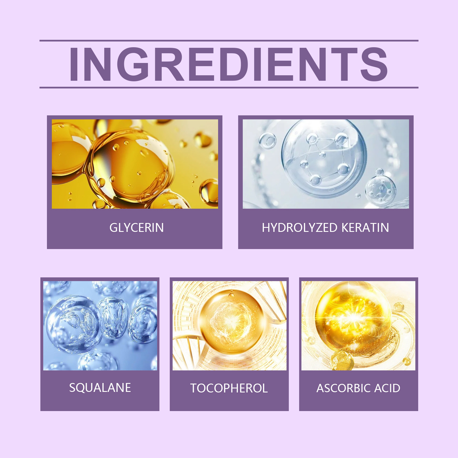 Our keratin hair mask contains vitamin C (ascorbic acid) and vitamin E (tocopherol). It restores the smoothness of dry hair, is rich in nutrients and improves hair health. Its use method is very simple: clean hair, wipe until half dry; Apply appropriate amount of this product evenly to the end of hair; Massage gently for 2-3 minutes, then wash off with water. And can make the hair more elastic and elastic, regular use to make the hair more shiny, protect the hair, reduce daily damage.