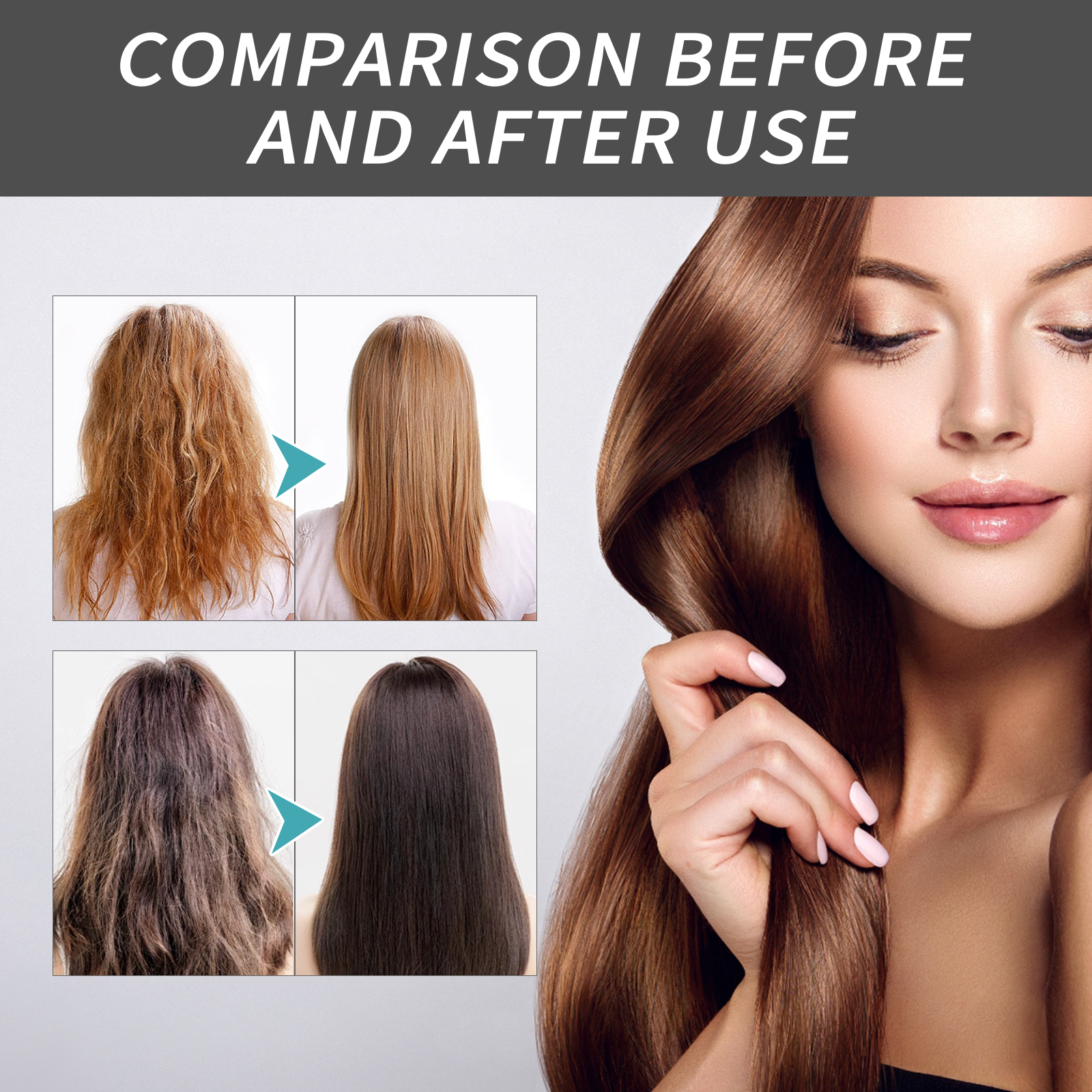 Our hair correction care cream contains cetaceyl stearol and dodecane cetyltrimethylammonium chloride. It can repair damaged hair, provide sufficient nutrition to the hair, restore its luster, soften the hair, enhance its luster and form black and lustrous hair. Its usage method is very simple: After washing your hair, dry it with a towel until it is half dry. Then, take an appropriate amount of this product and apply it evenly on your hair to ensure it is evenly distributed. Wait for 8 to 10 minutes and finally rinse it off with warm water. After use, it helps repair damaged hair quality, nourish hair strands, and thereby reduce frizzy hair and split ends.