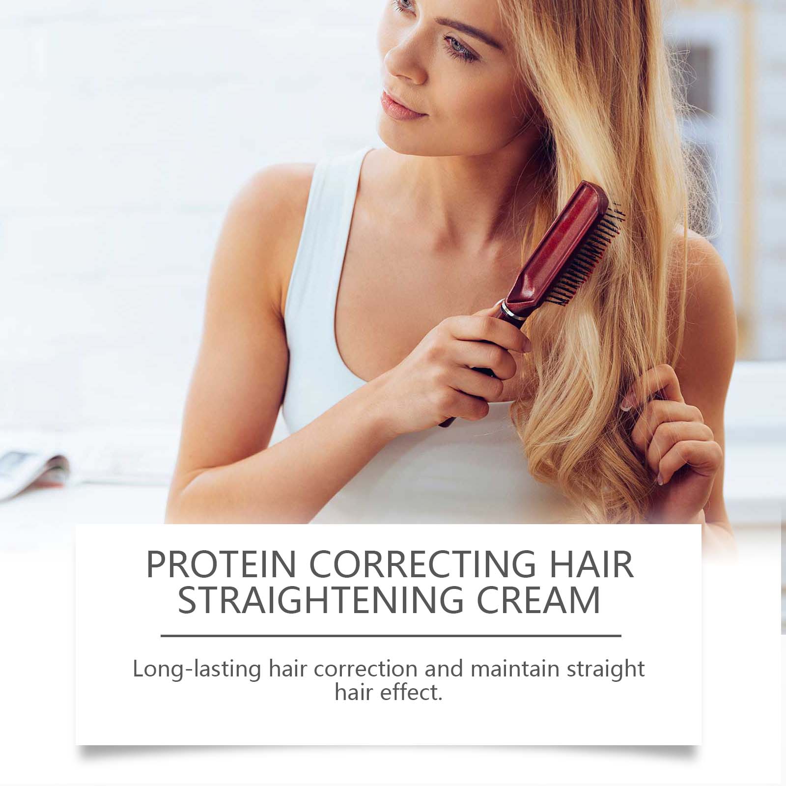 Our protein straightener contains keratin and vitamin E. It can provide long-term hair straightening effects and reduce daily administration time. Its use method is very simple: clean dry hair, take an appropriate amount of hair cream evenly apply on the hair, comb the hair straight, wait 10-30 minutes, wash the hair with water. And applies to all hair types, the effect is remarkable.