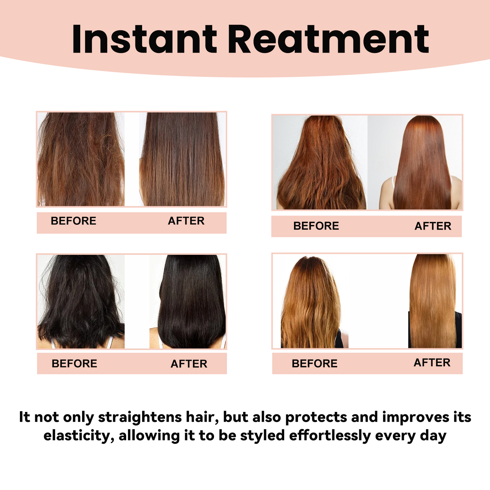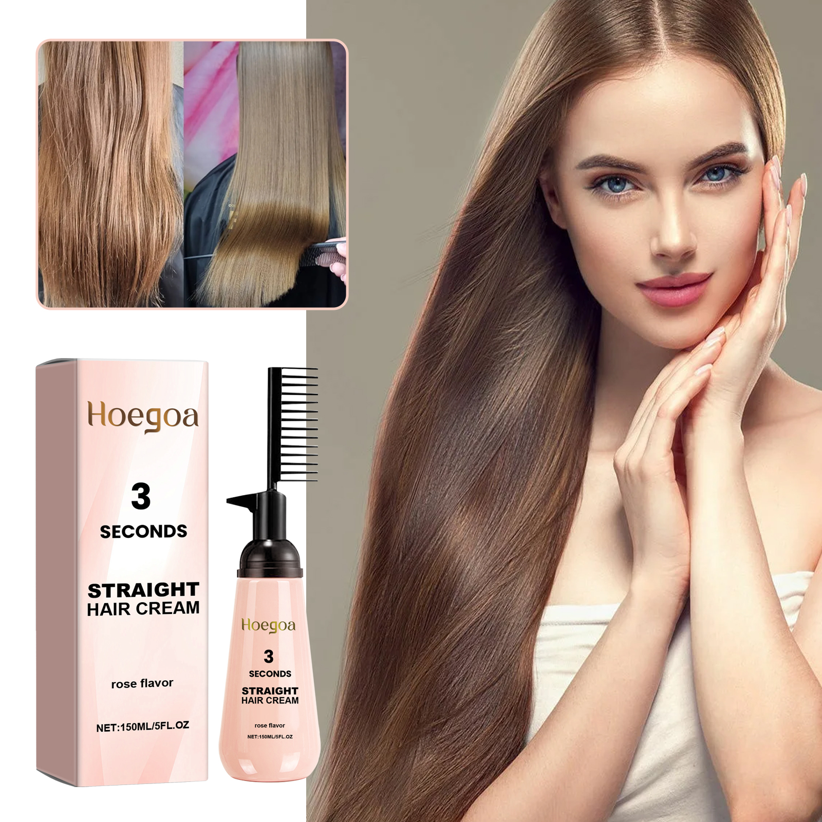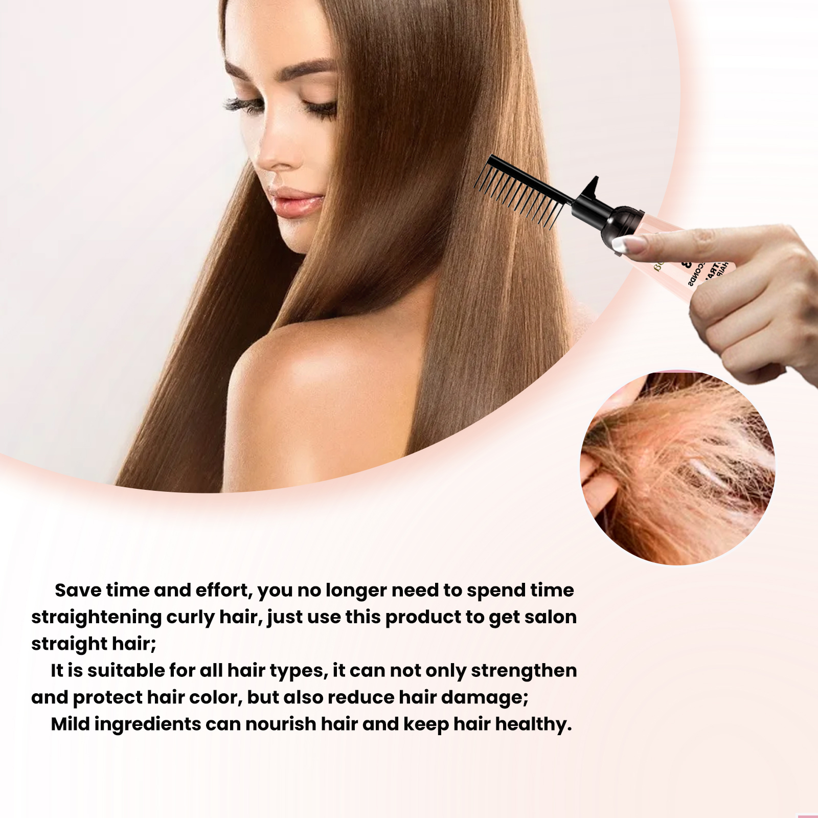 Our Rose Smoothing Smoothing cream contains 1, 2-hexanediol and rose oil. It strengthens and protects hair color and reduces hair damage; Mild ingredients nourish hair and keep it healthy. Its use method is very simple: take an appropriate amount of this product evenly apply to the hair, comb the hair smoothly with a comb, and then dry with a hair dryer. Not only does it straighten your hair, but it also protects and improves the elasticity of your hair so that you can easily style it every day.