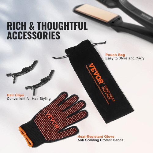 VEVOR Hair Straightener, 1.5-inch Titanium Flat Iron, Dual Infrared Hair Straightener Flat Iron with LCD Display and 19 Temp Levels - 210°F to 450°F, Dual Voltage 110V/240V for Salon Home Travel UseTitanium Heating PlateDual Infrared Heating TechnologyAdjustable TemperatureBe Your Own Hair StylistRapid Heating for Effortless StylingPerfect for Styling On-the-GoHeating Plate Width: 1.5-inch,Temperature Settings: 19,Heating Plate Material: Titanium Heating Plate,Item Model Number: WF066I,Temperature Range: 210-450 °F,Product Dimensions: 11.8 x 1.8 x 2.4 in / 300 x 45 x 60 mm,Net Weight: 1.06 lbs / 482 g,Power: 60W