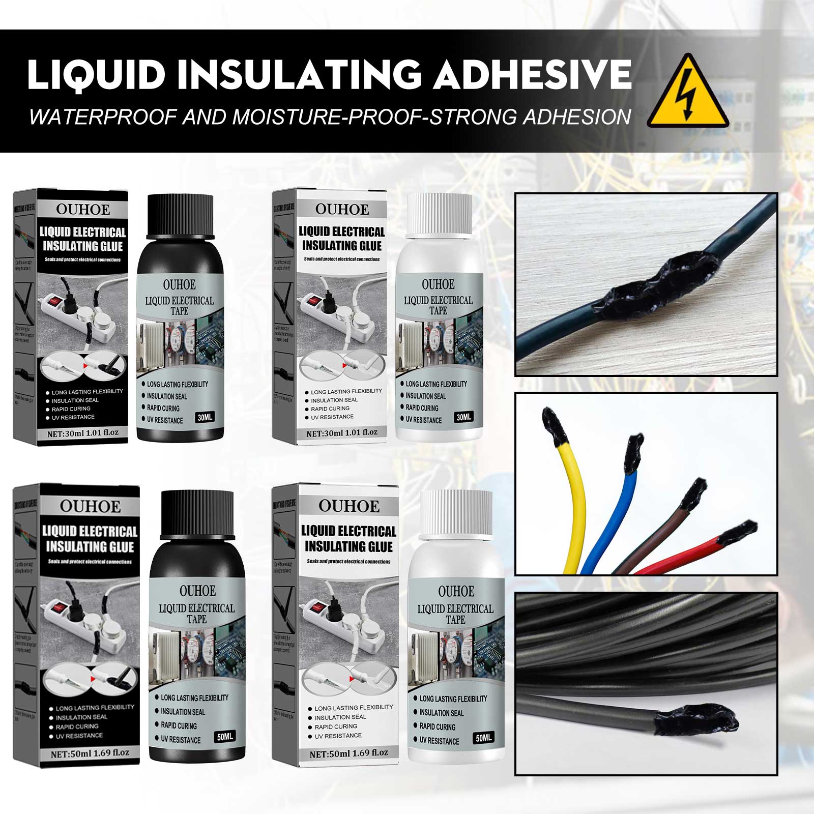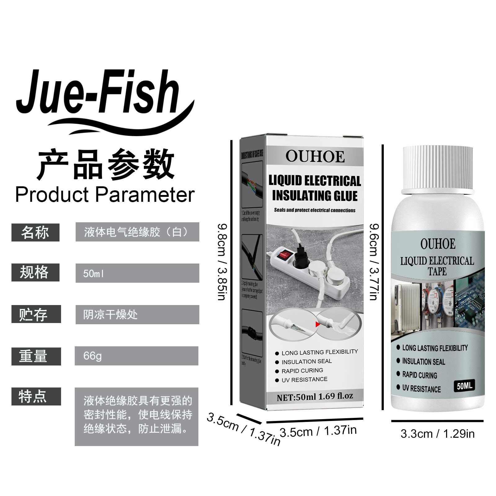Our liquid electrical insulating adhesive (white 50ml) contains resin, fillers and curing agents. It can be durable and flexible, insulated and sealed, cured quickly and resistant to ultraviolet rays. Its usage method is very simple: Cut off the power supply and keep the surface dry. Apply glue (a small brush can be used). Wait for it to dry after application. Professionally handle your broken, split and cracked wires.