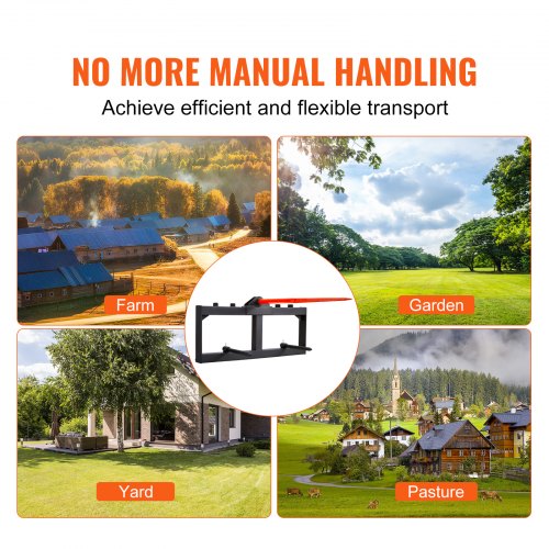 VEVOR 49" Hay Spear, Bale Spears 1600lbs Loading Capacity, Skid Steer Loader Tractor Attachment with 2pcs 17.5" Stabilizer Spears, Quick Attach Spike ForksBuilt to LastStable StructureEasy and Safe InstallationLong-Lasting PerformanceSecure PackagingUltimate Farm CompanionSpear Size(Dia. x L): 1.77 x 49.2 in/45 x 1250 mm,Weight Capacity: 1600 lbs/725 kg,Item Model Number: WBS-012,Product Weight: 126.76 lbs/57.5kg,Main Frame Size(LxHxW): 45.7x22.4x5.7 in/1160x570x145 mm,Number of Stabilizing Spears: 2,Stabilizing Spear Size(Dia. x L): 1.26 x 17.5 in/32 x 430 mm,Number of Spears: 1