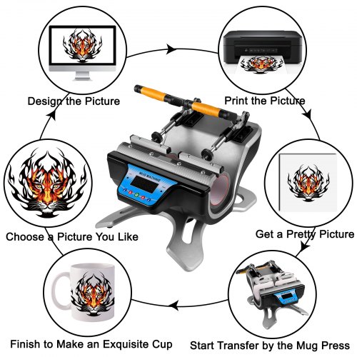 VEVOR Mug Heat Press, 2pcs 15oz Mug Press Sublimation Machine Dual Station Design, 280W LCD Cup Press Machine for 11oz-15oz, DIY Presser Transferring Pictures on Coffee Mugs Ceramic Cups Bottles2 in 1 Large CapacityDigital & Precise ControlAdjustable Tension ScrewUser-Friendly DetailsTrustworthy QualityEasy to OperateControl Model: LCD Control,Transmission Temperature: 356°F / 180℃,Suitable Mug Diameter: 3.15 - 3.35 in / 8 - 8.5 cm,Suitable Mug Height: 3.74 in / 9.5 cm,Rated Power: 280W,Transmission Time:90s:,Suitable Mug Capacity: 11-15oz,Weight: 14.63 lbs / 6.64 kg,Rated Voltage: 110V,Product Size: 14.96 x 12.12 x 15.59 in / 38 x 30.8 x 39.6 cm,Package Size: 18.11 x 14.96 x 16.53 in / 46 x 38 x 42 cm