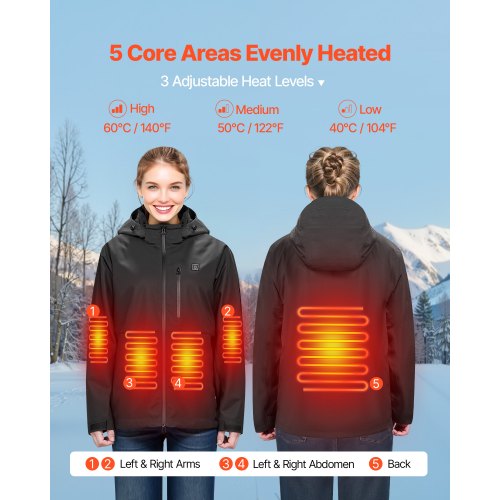VEVOR Heated Jacket for Men with 7.4V Battery Pack Winter Soft Shell M<br/>Outdoor Warmth<br/>Carbon Fiber Heating<br/>Smart Design<br/>Easy Care<br/>Ideal Present<br/>Large Capacity Pockets<br/>Size: M,Three Temperature Levels: 104–140 ℉ / 40–60 ℃,Color: Black,Item Model Number: RHB-002,Style: Men,Input Voltage: 7.4 V,Item Dimensions: 55.91 × 34.65 inch / 1420 × 880 mm,Net Weight: 2.07 lbs / 0.94 kg,Power: 13 W,Main Material: Waterproof Outer Fabric + Polyester Lining,Power Bank Capacity: 8000 mAh