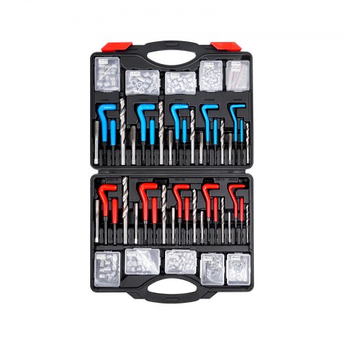 VEVOR Helicoil Thread Repair Kit 338-Piece SAE and Metric Rethreading Tool KitYour Reliable Repair AssistantComplete Accessories for Every NeedEffortless OperationPremium Quality MaterialsVersatile for Various ApplicationsComfortable and Reliable GripMain Color: Red, Blue & Black,Specifications: SAE: 1/4", 5/16", 3/8", 7/16", 1/2"; Metric: M5, M6, M8, M10, M12,Item Model Number: XRGY338,Quantity: 338 Pcs,Main Material: HSS