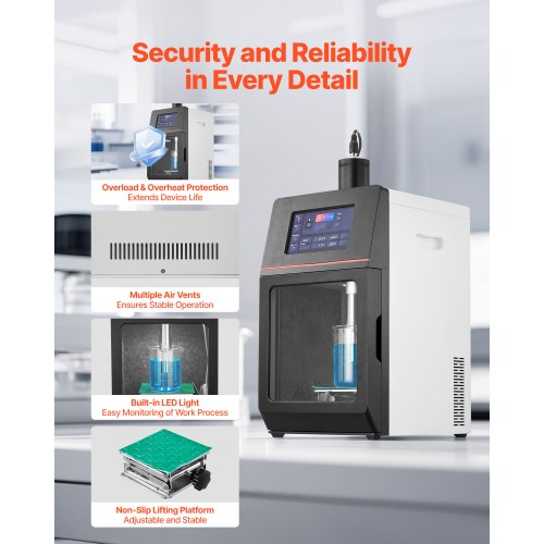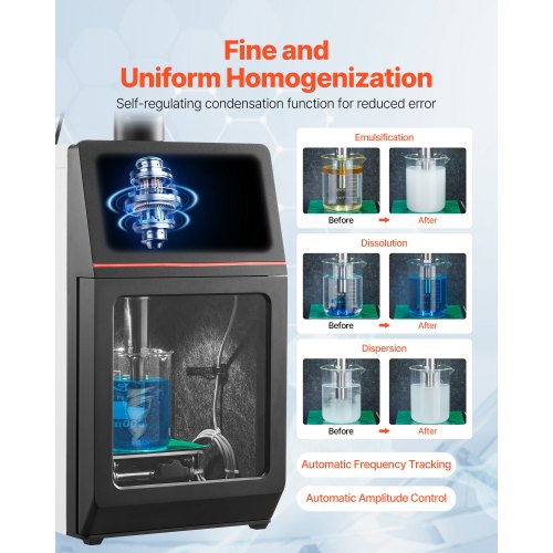 2 in 1 Ultrasonic Homogenizer 2000W 0.79 in Titanium Alloy Probe Three Modes2-in-1 DesignHigh-Quality Titanium Alloy ProbeVersatile Operating ModesQuick and Easy Parameter RecallVersatile ApplicationsOverheat ProtectionStirrer Shaft: Titanium T1,Net Weight (Including All Accessories): 23.48 lbs / 10.65 kg,Timer: 1S-99H Adjustable,Ultrasonic Frequency: 20KHz,Item Model Number: YHAU-2000A,Ultrasonic Power: 2000W,Operating Modes: Pulse, Time, Continuous,Product Dimensions (L x W x H): 13.46 x 10.63 x 22.05 in / 342 x 270 x 560 mm,Probe: Titanium T1,Main Material: ABS Plastic, Acrylic,Power Supply: 120V 60Hz,Temperature Setting: 33.8 - 392℉ / 1 - 200℃