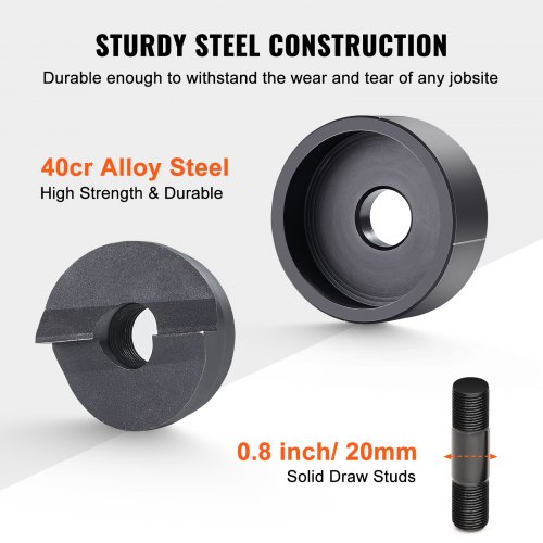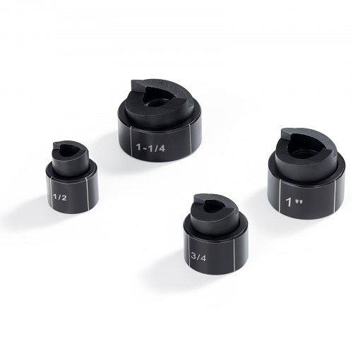 VEVOR Hydraulic Knockout Punch Driver Kit Hole Tool 4 Die 1/2", 3/4", 1", 1-1/4"4 Dies & Punches SetSelect Suitable SizeSlug Splitting DesignHow to Punch a HoleGuaranteed Quality WorkmanshipWide ApplicationNumber of Dies: 4,Model: SYK-8T-15T,Material: 40Cr Steel,Conduct Size: 1/2", 3/4", 1", 1-1/4",Thread Stud Specification: M20X1.5 & M10X1,Item Weight: 2.1 lbs/ 0.95 kg