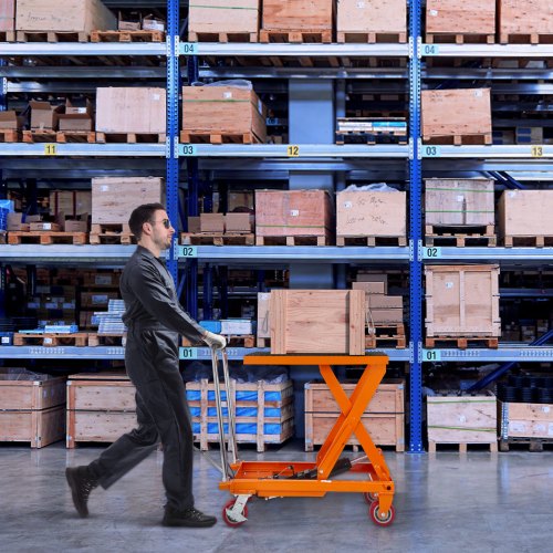 VEVOR Hydraulic Lift Table Cart, 1100lbs Capacity 35.4" Lifting Height, Manual Single Scissor Lift Table with 4 Wheels and Non-slip Pad, Hydraulic Scissor Cart for Material Handling and Transportation1100 lbs High Load CapacityLockable Swivel WheelsPremium Integrated Hydraulic PumpThoughtful DesignWide Range of ApplicationsNon-Slip Pad IncludedPlatform Size: 32 x 20 inches /815 x 505 mm,Load Capacity: 1100 lbs / 500 kg,Item Model Number: TFD50,Style: Single Scissor,Net Weight: 167.6 lbs / 76 kg,Lift Range: 11-35.4 inches / 285-900 mm,Pump: Hydraulic Pump,Main Material: Q235 Cold-Rolled Steel with Coating
