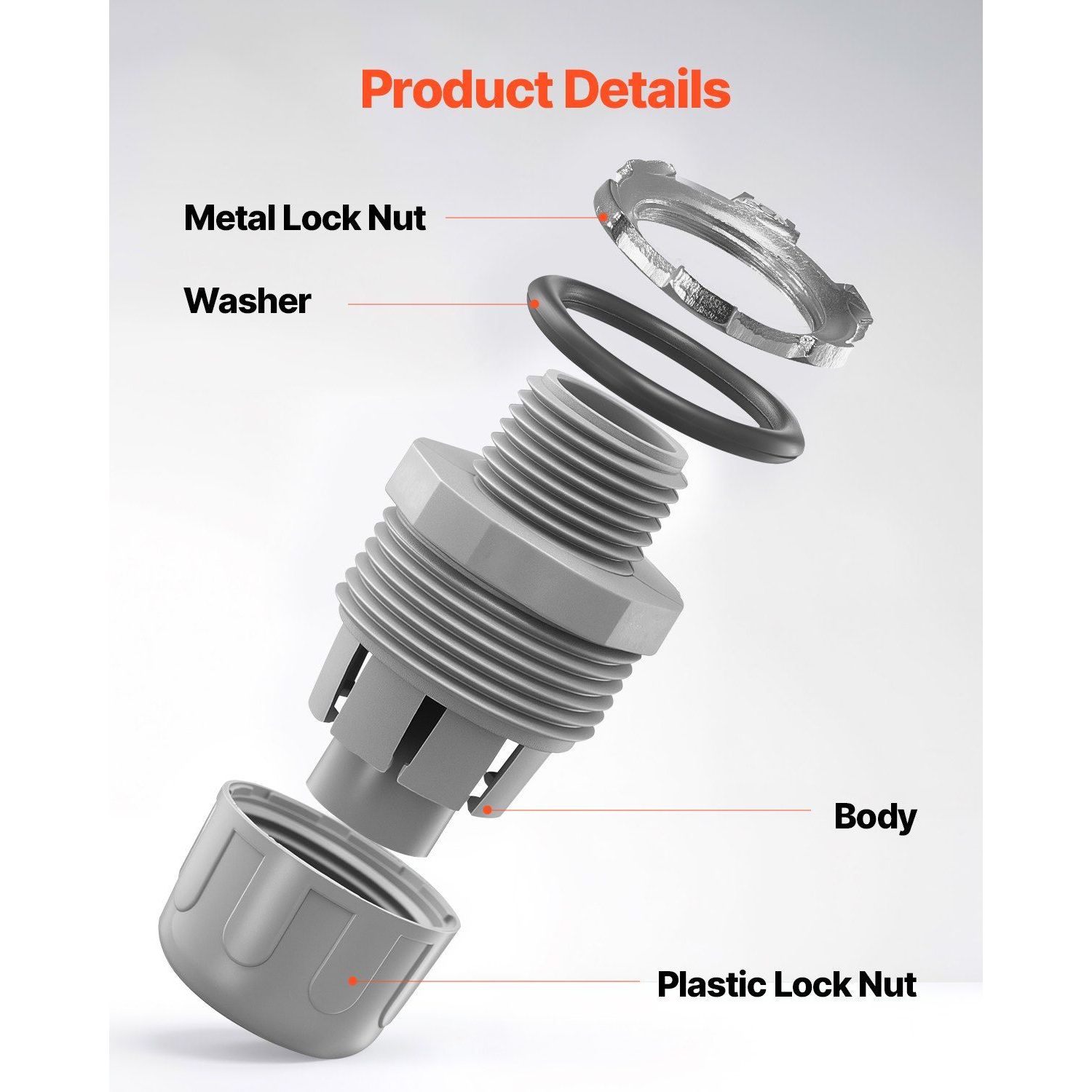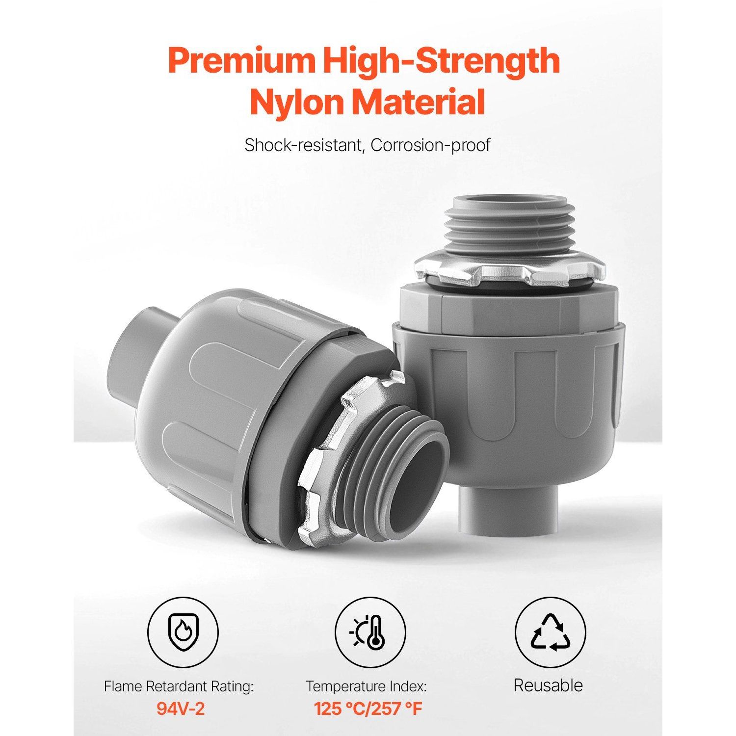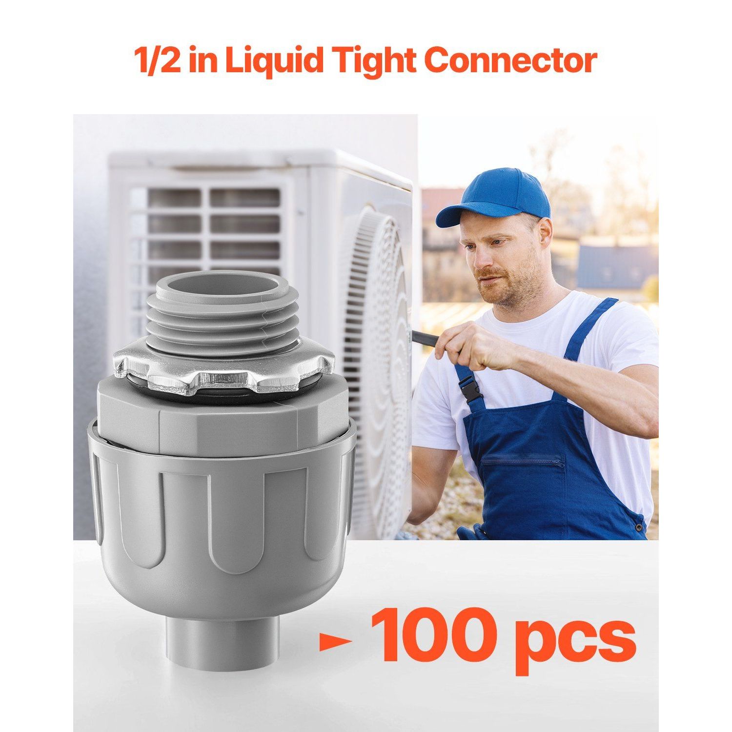 We offer 100 pieces of 1/2" liquid-tight connectors for durability. They are resistant to impact and corrosion, and are designed for long-term use. With a 94V-2 flame retardant rating and a 125°C temperature index, they bring reliable electrical connections.