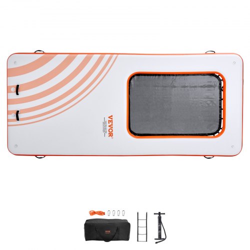 VEVOR Inflatable Floating Dock, 15x6.5FT Inflatable Dock Platform with 4*6FT Trampoline Mesh Pool, Non-Slip Floating Platform Water Mat with Portable Bag & Detachable Ladder for Pool Beach RelaxationDual-action Manual PumpSecure Anchoring SystemDetachable Four-Step Soft LadderWide ApplicationsUltimate Water FunEasy Setup, Maximum EnjoymentItem Color: White + Orange,Item Dimension: 15 x 6.5 ft / 4.57 x 1.98 m,Float Material: PVC Brushed Non-slip Fabric, Trampoline Mesh, PVC,Item Height: 8 in/ 203 mm,Item Model Number: RDM457-198,D-Ring Material: Stainless Steel,Product Weight: 59.08 lbs / 26.8 kg,Center Mesh Size: 4 x 6 ft / 1.21 x 1.82 m