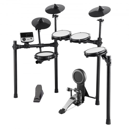 VEVOR Electric Drum Set Electronic Drum Kit 480 Sounds for Beginners & AdultsAll-in-One Drum SetExpressive Dual-Trigger SnareExpressive Dual-Trigger SnareResponsive Pedals for Smooth PlayingStability You Can Rely OnConvenient MIDI SupportKit Quantity: 32,Input Power Supply: AC100 V-240 V, 50 / 60Hz, 0.3 A,Product Type: Four-Legged Stand with Five Drums and Three Cymbals,Item Model Number: MD200D-P,Tom Type: 8 in / 203.2 mm Mesh Drumhead,Number of Sounds: 480,Snare Drum Type: 8 in / 203.2 mm Mesh Drumhead,Product Dimensions: 49.21 x 21.65 x 48.03 in / 1250 x 550 x 1220 mm,Net Weight: 36.38 lbs / 16.5 kg,Output Power Supply: DC 9 V, 0.5 A