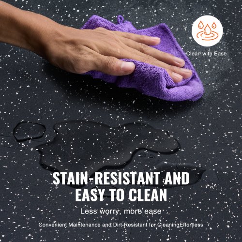 VEVOR 6 PCS 0.56" Thick Gym Floor Mats, 24" x 24" EVA Foam & Rubber Top Interlocking Workout Floor Mats with 24 sq.ft Coverage, Waterproof Exercise Puzzle Flooring for Gym, Home, Garage, Basement, Black & WhiteShock Absorption and ReboundDurable and Scratch-ResistantStrong SoundproofingEasy AssemblyConvenient CleaningEdge ProtectorsThickness: 0.56 in,Area: 24 SQFT,Set Quantity: 6 pcs,Color: Black with White Dots,Item Model Number: HRD-XJD6614-6W,Product Weight: 6.6 kg / 14.55 lbs,Dimensions: 24 x 24 in (per piece), with 2 Toothed Edges + 2 Straight Edges,Product Dimensions: 24 x 24 x 0.56 in / 610 x 610 x 14 mm,Main Material: Top Layer: Rubber, 2 mm (Synthetic Rubber + 5% EPDM Granules), Bottom Layer: PE, 12 mm