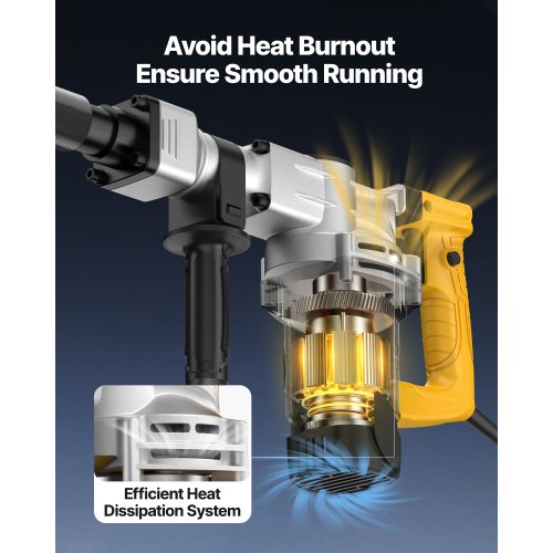 VEVOR Demolition Jack Hammer Concrete Breaker 1400W Electric Hammer 2 Chisel BitHigh-Powered DemolitionMultiple Chisel AttachmentsSecure and ReliableComfortable OperationConvenient Oil RefillingSturdy Aluminum ConstructionSingle Impact Energy: 19J,Case Sizes: 19.7 x 4.7 x 13.4 in / 500 x 120 x 340 mm,Rated Impact Frequency: 2900BPM,Net Weight(Include Accessories): 17.9 lbs / 8.1 kg,Color: Yellow,Item Model Number: JH-0840,Application: Concrete, Stone, Brick, Asphalt,Power: 1400W