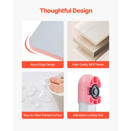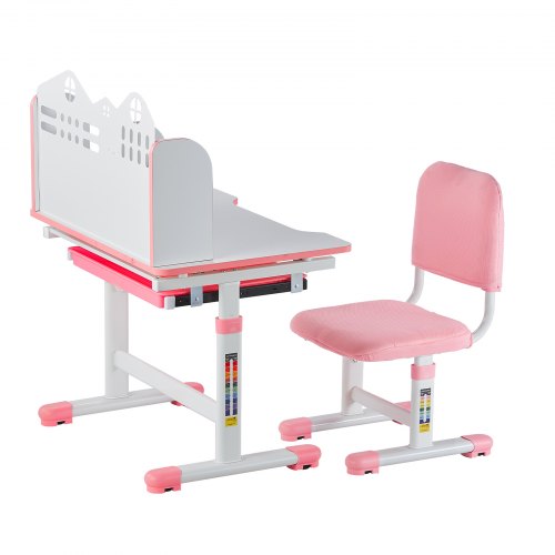 VEVOR Kids Study Chair and Desk Set, Study Desk and Chair for Kids with Bookshelf and Storage Drawer, Adjustable Height Kids Study Desk with Chair, Children Study Table for Bedroom & Study Room, PinkSpacious Writing DeskErgonomic Chair DesignHeight Adjustable for GrowthEfficient Storage ManagementDurable and Sturdy ConstructionEasy AssemblyDesk Height Adjustment: 20.87 - 27.95 in / 530 - 710 mm,Chair Height Adjustment: 26.00 - 30.71 in / 660 - 780 mm,Desktop Shape: 25.3 x 5.9 x 14.4 in / 643 x 150 x 365 mm,Chair Dimensions: 15.35 x (26.00 - 30.71) x 16.54 in / 390 x (660 - 780) x 420 mm,Item Model Number: 70-3,Product Weight: 35.85 lbs / 16.23 kg,Desk Dimensions: 27.56 x 19.69 x (20.87 - 27.95) in / 700 x 500 x (530 - 710) mm,Desk & Chair Weight Capacity: 220 lbs / 100 kg