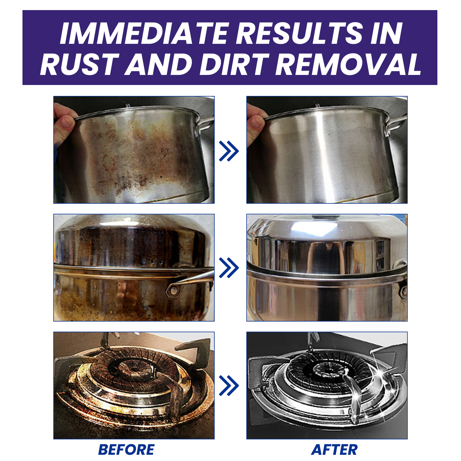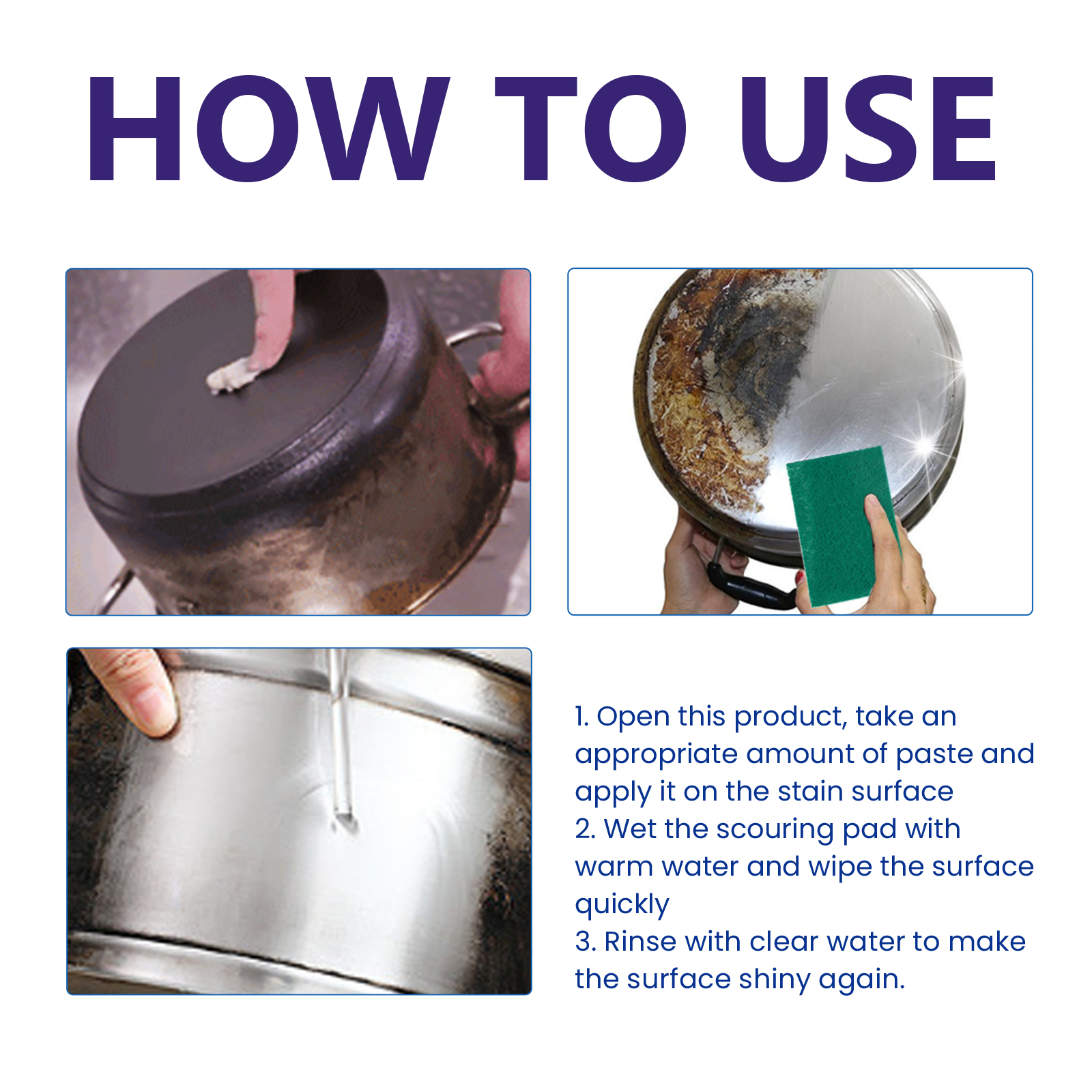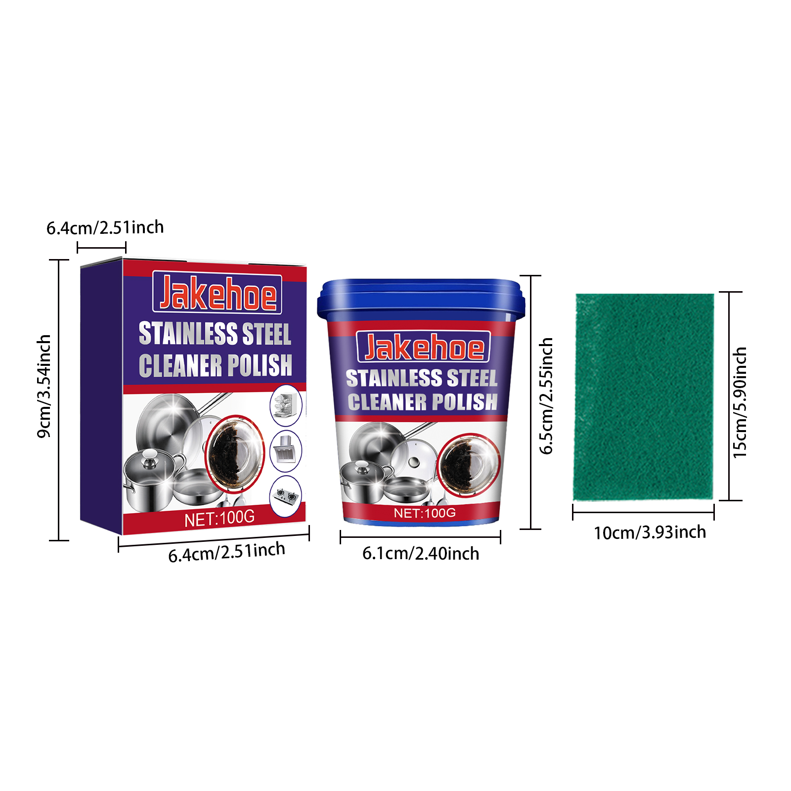 Our stainless steel cleaning creams contain surfactants and solvents. It can quickly remove stubborn stains, oxidation layers and rust on the surface of various types of stainless steel, and extend the service life of metal kitchenware. Its use method is very simple: 1. Open this product, take appropriate amount of paste, apply to the surface of the stain. 2. Wet a cloth with warm water and wipe the surface quickly. 3. Rinse with clean water to make the surface shiny again. And suitable for cleaning ovens, POTS, kitchenware and stoves, door and window frames, cars, ceramic sanitary ware, glass and so on.
