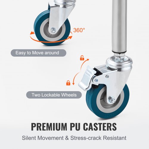 VEVOR Lab Rolling Cart, 2-Shelf Stainless Steel Rolling Cart, Lab Serving Cart with Swivel Casters, Dental Utility Cart for Clinic, Lab, Hospital, Salon, 15.16"x21.57"x34.06"220 lbs Loading WeightFour Swivel CastersLarge Storage SpaceConvenient HandleBuilt-in GuardrailWide UsageWheel: Omnidirectional, Lockable,Item Model Number: K-ST753,Product Weight: 10.91 lbs/4.95 kg,Material: Stainless Steel,Maximum Weight Capacity: 220 lbs/100 kg,Layer: 2,Product Size: 15.16x21.57x34.06 inch/385x548x865 mm