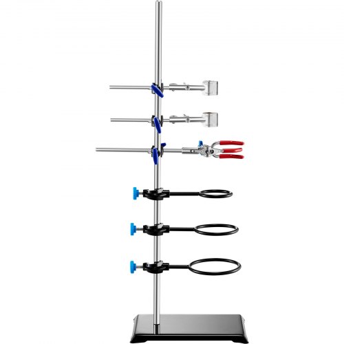 VEVOR Lab Stand Support, Laboratory Retort Support Stand Set, Steel Lab Stand 23.6" Rod and 8.3" x 5.7" Cast Iron Base, Includes Flask Clamps, a Burette Clamp and Cross ClampsSturdy Cast Iron BaseAdjustable ClampsVersatile Retort RingsWide Range of ApplicationsEasy InstallationCorrosion-proof RodsBase Size: 8.3 x 5.3 inch,Rings: ① I.D.: 1.85 inch/47mm, Quantity: 1; ② I.D.: 2.64 inch/67mm, Quantity: 1; ③ I.D.: 3.27 inch/83mm, Quantity: 1,Item Model Number: YHEO-5,Product Weight: 3.68 lbs/1.67 kg,Package Quantity: 1 pcs,Product Dimensions: 23.62 x 10.63 x 5.3 inch/600x270x135 mm,Stand Height: 23.6 inch