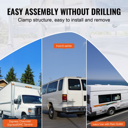 VEVOR Van Roof Ladder Rack, 2 Bar Alloy Steel Ladder Racks, Adjustable from 47.2"-78.7", 500 lbs Capacity, Roof Rack Compatible with Full-size Vans with Rain Gutter, Chevrolet Express, GMC Savana, etc500 lb Loading CapacityRust and Corrosion ResistanceWide Range of ApplicationsEasy InstallationFirmly FixedNo Sharp Corner DesignHeight Range: 6.3-7.7 inch/160-195 mm,Mount Type: Install on rain gutters,Item Model Number: BYCD-004,Length Range: 47.2-78.7 inch/1200-2000 mm,Quantity: 2 pcs,Max. Capacity: 500 lbs/227 kg,Net Weight: 19.6 lbs/8.9 kg,Product Size: 49.2 x 14.6 x 5.1 inch (1250 x 370 x 130 mm)