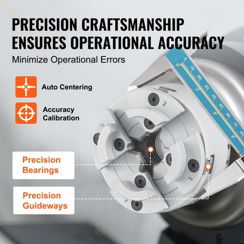 VEVOR KP96 Lathe Chuck, 4-Jaw 3.75" Diameter, Metal Lathe Chuck Turning Machine Accessories, Self-centering Tool, for Lathe, Precision Machining, Grinding Machines, Milling MachinesExceptional DurabilityExceptional Operating PrecisionThe Flexibility of Adjustable JawsEasy-to-Get-Started User ExperienceVersatile Single JawWidely UseClamping Range (Inner): 1.26-2.75"" (32-70 mm),Outer Diameter Runout: ≤0.15 mm,Test Bar Radial Runout: ≤0.40 mm at a distance of 50 mm,Surface Treatment and Color: ≤Ra1.6, chrome-plated natural color,Test Ring End Face Runout: ≤0.15 mm,Item Model Number: KP96,Support Range (Outer): 1.77-3.4"" (45-86 mm),Chuck Internal Thread: M33*3.5TPI,Product Dimensions: φ96 x 80 mm,Chuck Outer Diameter: 3.75"" / φ96 mm,Net Weight: 4.8 lb / 2.2 kg,Main Material: 45#