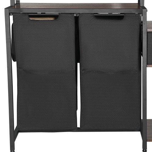 VEVOR 3-Tier Laundry Sorter with Rack Tall Laundry Hamper with Shelves 2 Section<br/>Efficient Storage<br/>Easy Mobility<br/>Multi-Use Top<br/>Versatile & Practical Design<br/>Versatile Placement<br/>Easy to Clean<br/>Outer Dimensions: 14.17 x 11.81 x 22.44 in / 360 x 300 x 570 mm,Number of Compartments: 2,Inner Dimensions: 13.39 x 11.42 x 22.44 in / 340 x 290 x 570 mm,Material: 600D Oxford Fabric,Single Inner Capacity: 14.8 Gallons,Drawer: 1,Product Dimensions: 37.01 x 15.35 x 66.14 in / 940 x 390 x 1680 mm,Number of Wooden Shelves: 3,Tabletop Weight Capacity: 66.14 lbs / 30 kg,Weight Capacity per Bag: 11.02 lbs / 5 kg,Single Outer Capacity: 16.26 Gallons,Shelf Weight Capacity: 22.05 lbs / 10 kg,Item Model Number: XYL08,Net Weight: 29.32 lbs / 13.3 kg