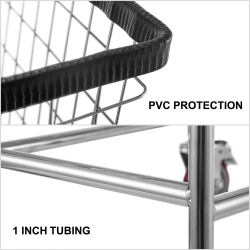 VEVOR Wire Laundry Cart, 4.5 Bushel Wire Laundry Basket with Wheels, 35''x15.7''x22'' Commercial Wire Laundry Basket Cart, Steel Frame with Chrome Finish, 5'' Casters, Wire Basket Cart for Laundry4.5 Bushel CapacitySturdy StructureThreaded Stem CastersStable DesignsEasy to AssembleWidely UsedCaster Diameter: 5''/125 mm,Caster Material: PP,Capacity: 4.5 Bushel/158 L,Item Dimension: 20''x15.7''x26''/510x400x660 mm,Frame Material: Galvanized Steel,Basket Dimension: 26.4''x15.7''x10''/670x400x260 mm