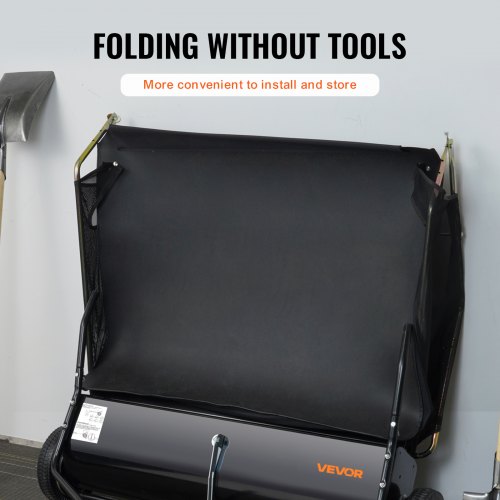 44" Tow Behind Lawn Sweeper 25 Cu. Ft. Leaf & Grass Collector Adjustable Height<br/>Efficient Lawn Sweeper–Keep Your Lawn Clean with Ease<br/>Included Hopper Bag<br/>Convenient Folding<br/>Grass & Leaf Collector<br/>Easy Cleaning<br/>Wide Applications<br/>Sweeping Width: 44",Hopper Capacity: 25 cu. ft.,Wheel Size: 10.5 in /26.7 cm,Main Materials: Iron, PP, PVC, Polyester,Brush-Wheel Ratio: 5:1,Product Size (L x W x H): 66.93 x 51.97 x 27.95 in/1700 x 1320 x 710 mm,Color: Black,Item Model Number: TC5001E,Product Weight: 65.25 lbs/29.6 kg,Hopper Bag Material: Nylon,Finish: Painting