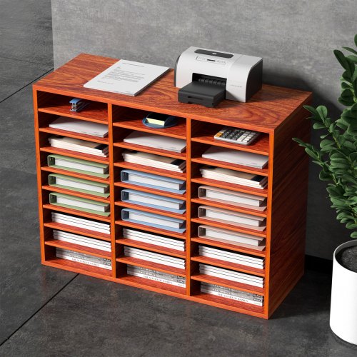 VEVOR 27 Compartments Wood Literature Organizer, Adjustable Shelves, Medium Density Fiberboard Mail Center, Office Home School Storage for Files, Documents, Papers, Magazines, Brown27 Awesome CompartmentsAdjust with EaseBuilt to LastQuick AssemblyNo Scratches to SurfacesDiverse ApplicationPer Compartment Dimension: 9.2 x 11.1 x 2.2 in/23.3 x 28.1 x 5.5 cm,Frame Board Thickness: 0.6 in/15 mm,Product Dimension: 31.5 x 12.0 x 24.8 in/800 x 305 x 630 mm,Model: KLFC-14,Material: MDF,Shelf Thickness: 0.35 in/9 mm,Per Compartment Capacity: 11 lbs/5 kg,Item Weight:58.1 lbs/26.35 kg