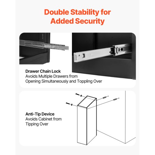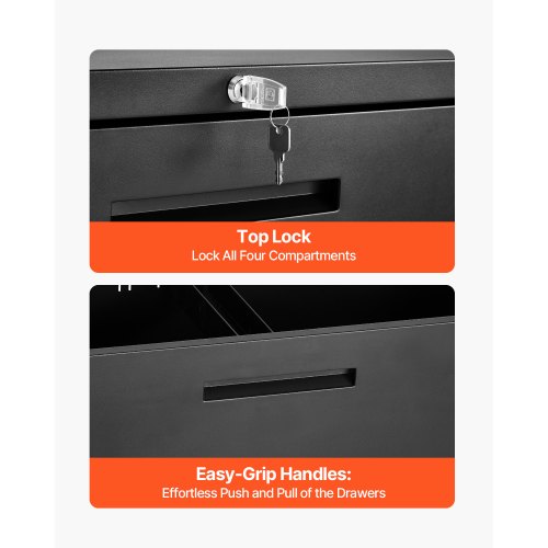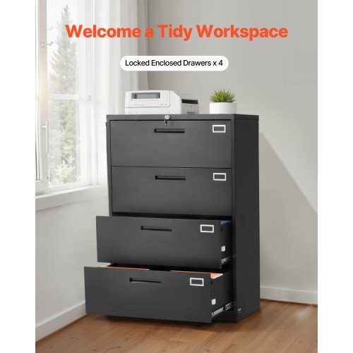 VEVOR 4 Drawers Metal File Cabinet, Vertical Filing Cabinet with Lock and Adjustable Hanging Rod, Tall Filing Storage Cabinets for Home and Office Fit Letter, A4, Legal Size File, Easy Assembly, BlackMultifunctional Metal File CabinetSpacious StorageLarge Drawer SpaceStable StructureThoughtful DetailsHigh-Quality DetailsColor: Black,Anti-Tipping Accessories: Yes,Product Dimensions: 52.17 x 16.10 x 35.51 inch / 132.5 x 40.9 x 90.2 cm,Single Drawer: 66-77 lbs / 29.94-34.93 kg,Lock: Yes,Number of Drawers: 4,Total Weight Capacity: 264 lbs / 119.75 kg,Adjustable Hanging Rod: Yes,Item Model Number: W1247SS0218,Power Strip Type: /,Hooks: /,Net Weight: 94.91 lbs / 43.05 kg,Power: /,Main Material: Cold-rolled Steel