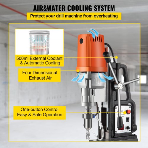 VEVOR Magnetic Drill 1680W Magnetic Drill Press with 2 Inch Boring Diameter Annular Cutter Machine 2900 LBS 6pcs HSS Annular Cutter BitsExcellent PerformancePractical Accessories13,000 N Suction PowerDustproof Cooling HoleConsiderable DetailsVarious ApplicationGross Weight: 48.6 lb (22 kg),Machine Type: Magnetic Drill Press,Boring Diameter: 12-50 mm (0.5"-2"),Power Source: Electric,Maximum Boring Depth: 210 mm (8.3"),Rotary Speed: 500 RPM,Package Dimensions (L x W x H): 20" x 14.2" x 7.1" (51 x 36 x 18 cm),Voltage: 110V, 50/60 Hz,Magnetic Force: 2900 lb (13000 N),Stainless-steel Pot: 30.51Cubic Inch /500ml,Power: 1680W,6 HSS Drill Bits: 9/16", 11/16", 13/16", 15/16", 1", 1-1/16"; 2" depth