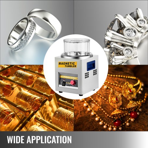 VEVOR Magnetic Tumbler, 180mm Jewelry Polisher Tumbler,2000 RPM KT-185 Jewelry Polisher Finisher with Adjustable Direction and Time for Jewelry (185mm)Premium Polishing BarrelMultifunctional PanelUser-friendly DesignA Bag of Tumbler PinsNo-slip Rubber PadWide ApplicationSpeed: 1400-2000rpm,Capacity: 1.76 lbs / 800 g,Voltage: 110V AC 60Hz,Item Model Number: KT-1851,Time Control: 0-60min,Machine Size: 9.1 x 9.1 x 14.9 in / 23 x 23 x 38 cm,Outer Roller Size: 7.3 x 5.1 in / 18.5 x 13 cm,Net Weight: 20.94 lbs / 9.5 kg,Power: 250W,Inner Roller Size: 7.1 x 3.9 in / 18 x 10 cm