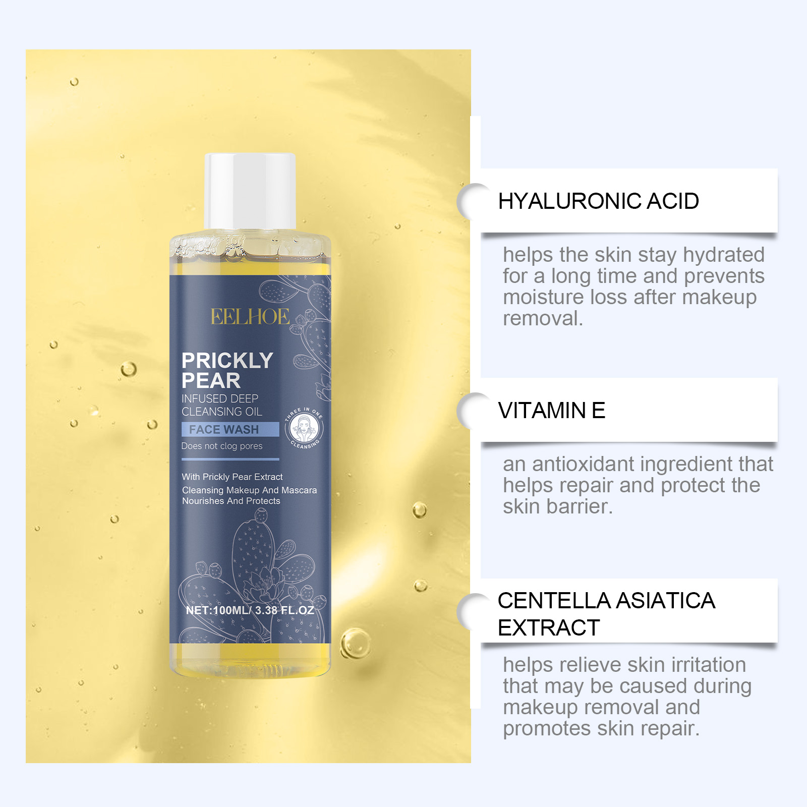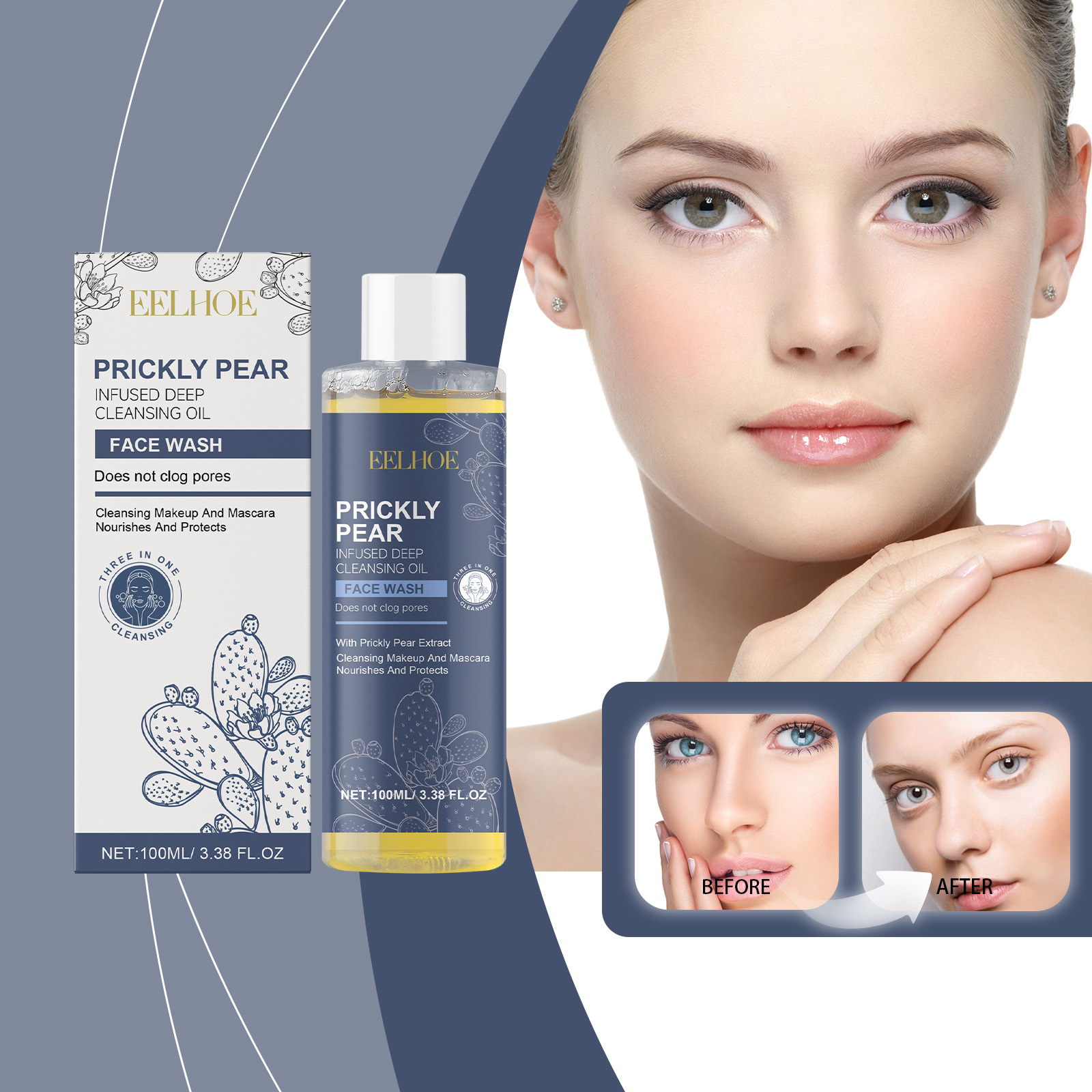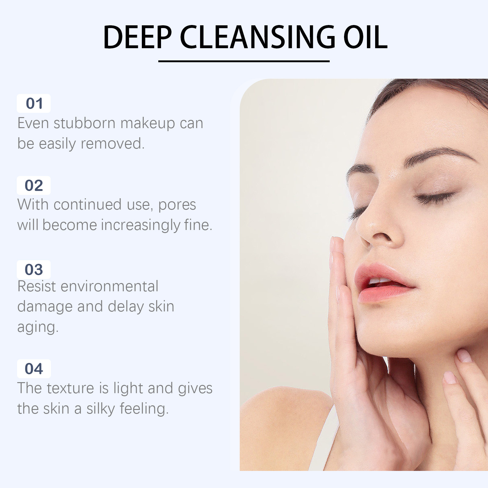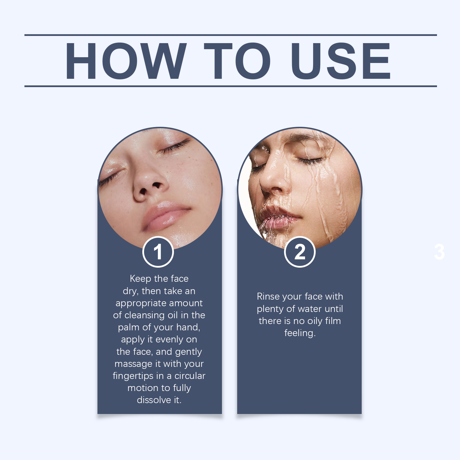 Our facial cleansing oil contains tocopherol (vitamin E), cactus extract. It penetrates deep into pores and completely removes dirt. The way to use it is simple: keep your face dry, then take an appropriate amount of cleansing oil in the palm of your hand, evenly apply it to your face, and gently massage it with your fingertips to dissolve it completely. Rinse your face with plenty of water until there is no feeling of oil film. It can effectively remove makeup residue and purify skin.